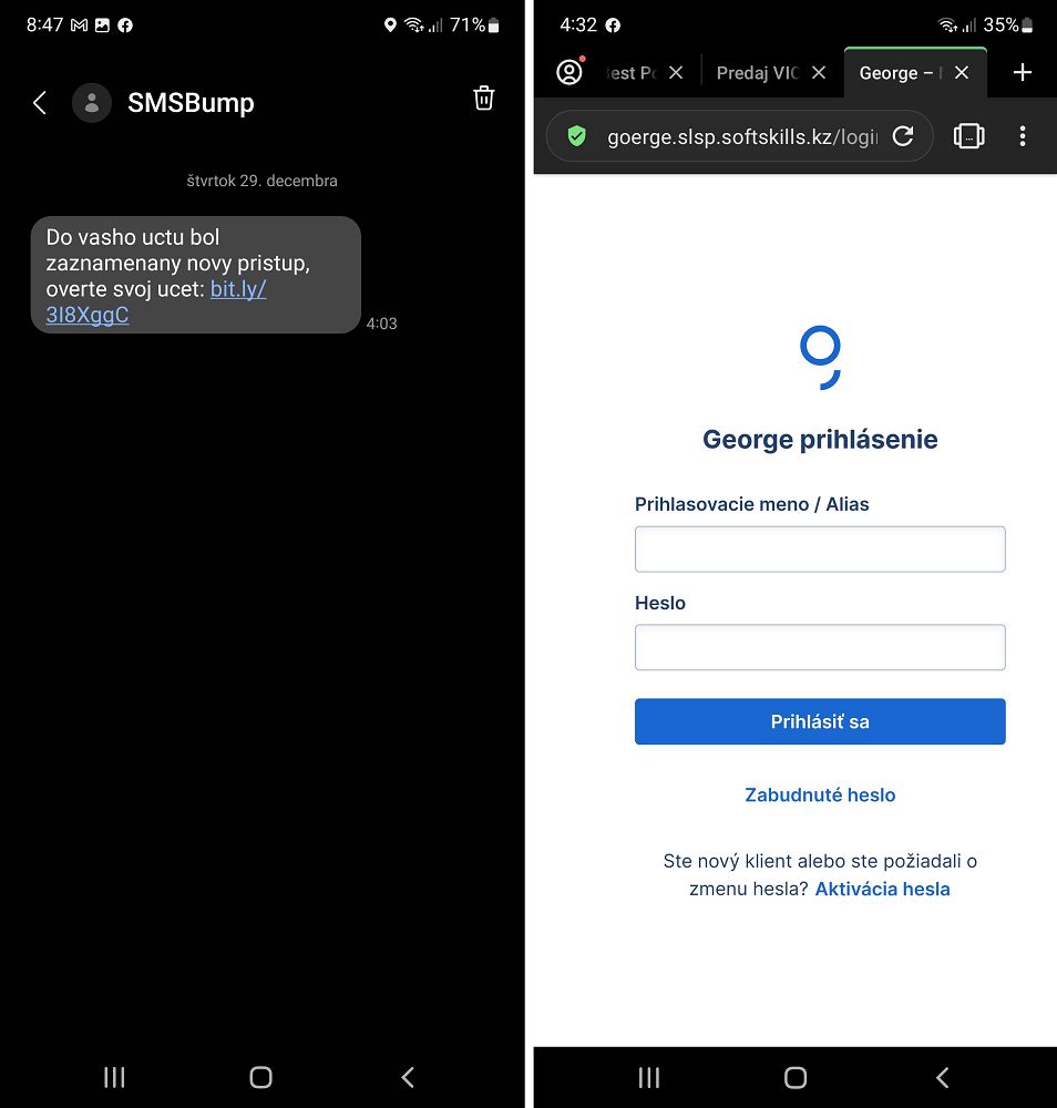 Ako odosielateľ bol totiž uvedený výraz SMSBump, čo je platforma pre zasielanie marketingových správ. Text esemesky bol stručný: „Do vasho uctu bol zaznamenany novy pristup, overte svoj ucet“. Nasledovala skrátená URL adresa.