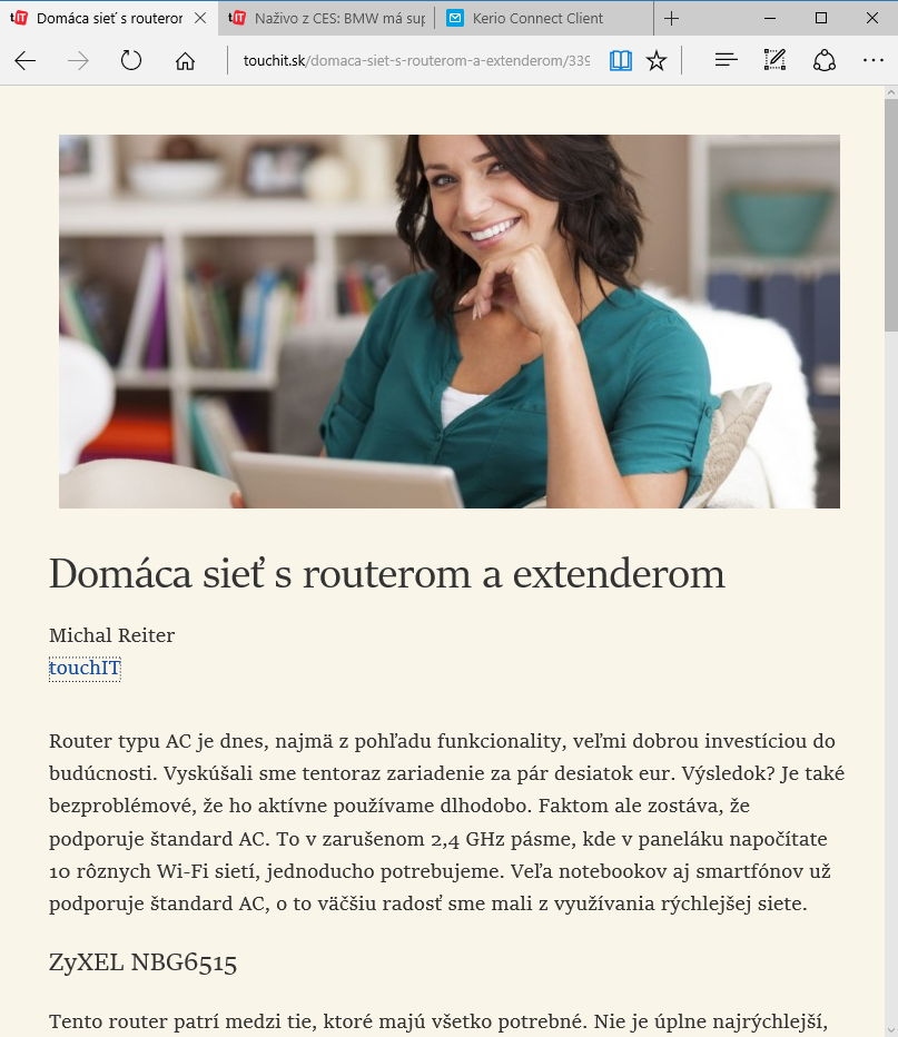 Microsoft Edge je veľmi dobrý prehliadač, a to hneď v niekoľkých smeroch. Je jednoduchý a preberá nastavenia synchronizácie zo systému. Takže, ak ste prihlásení pod svojím Microsoft účtom vo Windows 10, automaticky ste prihlásení do všetkých služieb s takouto verifikáciou aj v prehliadači. Poďme však pekne po poriadku a nebudeme tajiť, že na úplný prechod z vyššie uvedených prehliadačov to ešte celkom nie je, ale časom bude. Edge je ideálna voľba pre tých, čo chcú v systéme použiť jednoduchý prehliadač, majú zariadenie s Windows 10 Mobile a majú radi jedno známe rozhranie. Prehliadač zobrazuje na úvodnej karte správy z rôznych tematických oblastí. Naša krajina ešte nie je podporovaná, takže pre nás to nemalo zatiaľ zmysel. Ak si nastavíte takúto domácu obrazovku, budete ju mať na každej novej karte. Nad náhľadmi článkov zo spravodajských webov sa zobrazia aj najnavštevovanejšie weby. To je celkom užitočné, no v zásade to nepotrebujeme. Všade máme záložky. Tie môžete mať zobrazené aj v tomto prehliadači. Je škoda, že panel nie je zobrazený hneď. Celkovo je prehliadač po prvom zapnutí až príliš jednoduchý. S trochou irónie, sme radi, že riadok na zadanie adresy zostal súčasťou prehliadača. Ovládanie programu nám viac pripomína mobilnú verziu, nemáme k nemu výhrady. Záložky sa dajú z nainštalovaných prehliadačov importovať. Prenesú sa všetky, no na panel sa správne nevložia tie, ktoré sú potom v priečinku s názvom Panel s obľúbenými položkami. Práve tie sme mali v Chrome na paneli obľúbených. Tu sú v podadresári. Je to detail, ale mal už byť vyriešený.