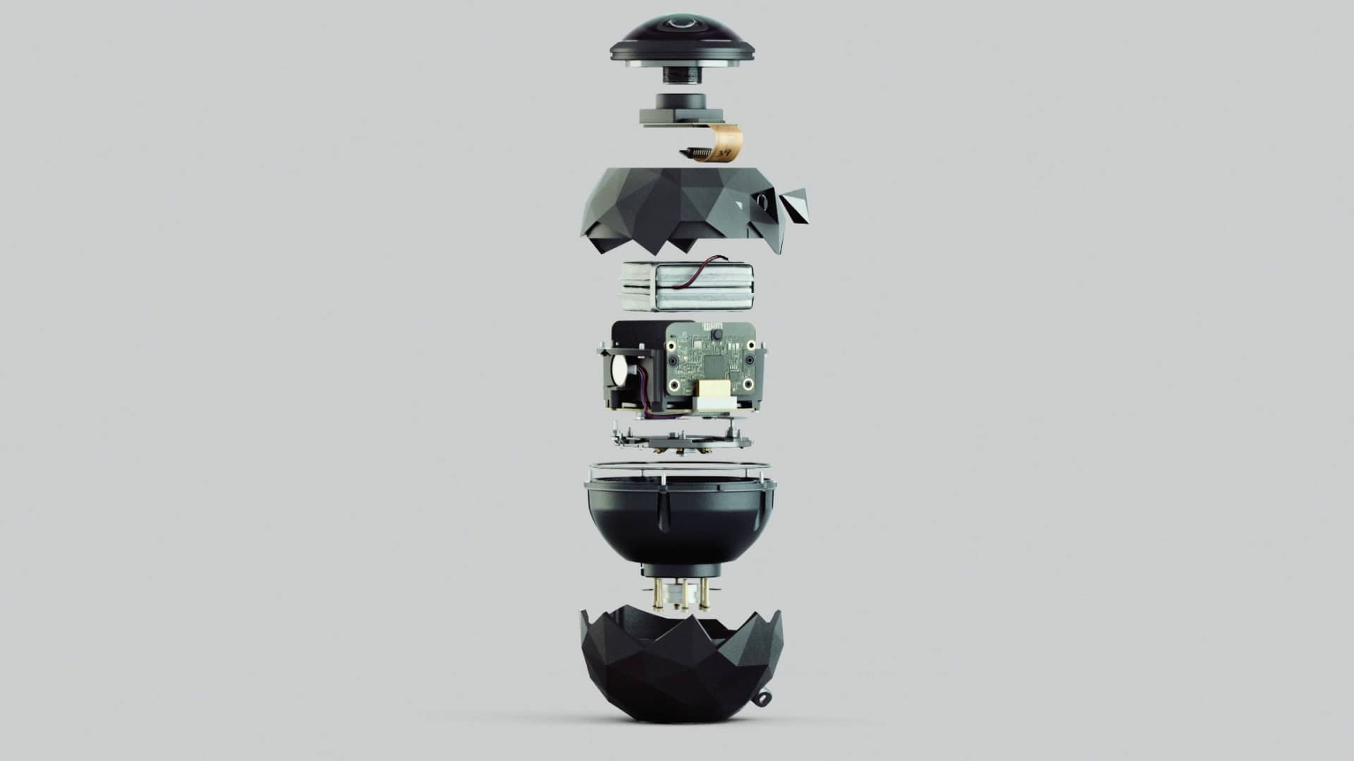 Kamera 360Fly je už na prvý pohľad netradičná v porovnaní s bežnými kamerami. Má guľatý tvar a jednu šošovku umiestnenú hore. S dizajnom kamery sa jej tvorcovia celkom vyhrali, vyzerá ako keby bola vytesaná zo skaly. Na jej povrchu je množstvo tvarov a vyzerá to originálne. Na kamere nájdete jediné tlačidlo, ďalej je tu trojfarebná LED a v spodnej časti je mikrofón. Samozrejmosťou je systém na uchytenie kamery k podstavcom. Vo výbave je ešte textilné puzdro na kameru.