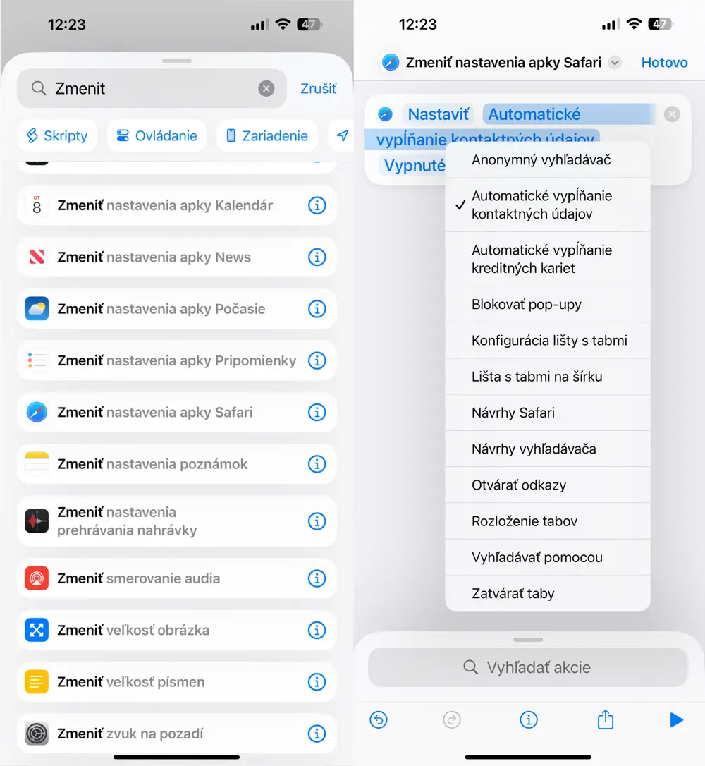 Pokiaľ aplikáciu Skratky používate, spustite ju a pozrite si aktuálnu ponuku nástrojov a funkcií. Zoznam nových skratiek na zmenu nastavení prehliadača Safari si môžete pozrieť na priloženom obrázku.