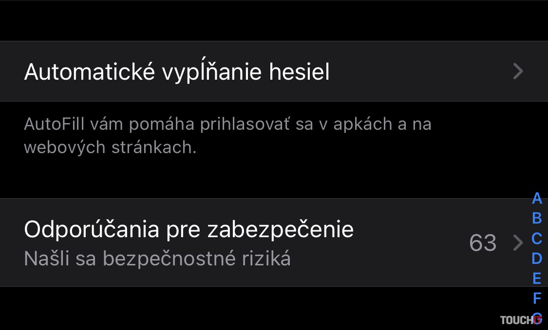 Kedykoľvek sa budete v rámci danej služby prihlasovať, zariadenie vám môže pomôcť automaticky zadať vaše údaje (po verifikácii – FaceID/TouchID/kód). Je dobré vedieť, že informácie o vašich účtoch sú na zariadení zašifrované a spoločnosť Apple ich nevidí. To ale nie je všetko, veľmi dôležitá sekcia systému je automatické upozorňovanie na slabé heslá alebo heslá, ktoré mohli byť súčasťou rôznych únikov dát.