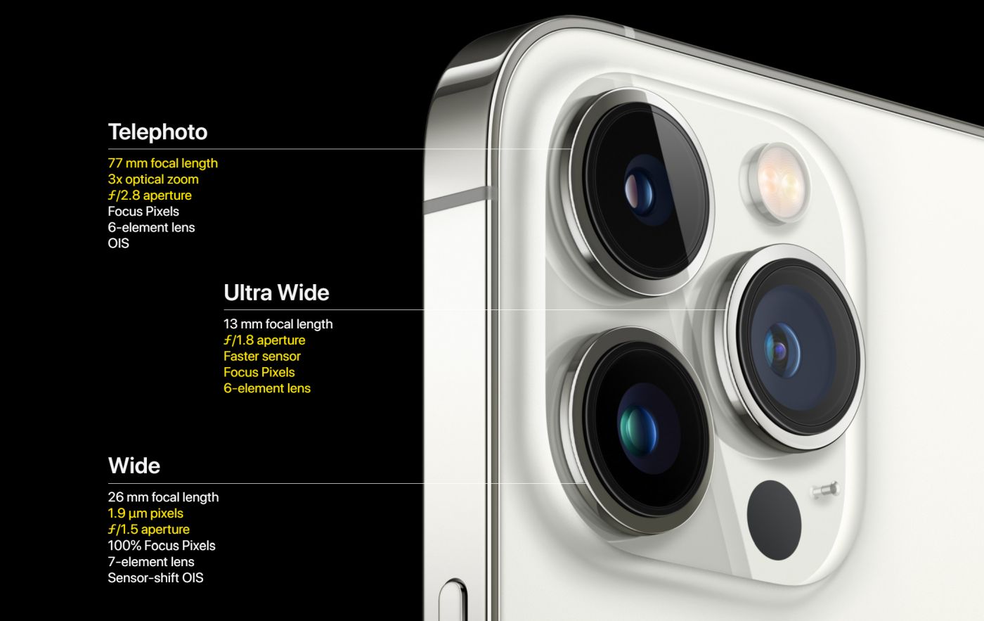 iPhone 13 Pro a Pro Max ponúkajú zlepšenia, ktoré sme spomínali v prípade štandardných iPhonov 13. Zároveň ponúkajú úplne nové senzory a to vrátane teleobjektívu s 3× optickým priblížením a špeciálny režim záznamu videa v tzv. ProRes režime, ktorý podľa slov Applu ocenia profesionálni tvorcovia.