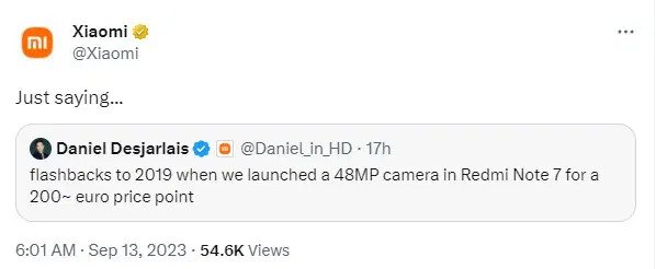 Čínsky výrobca podotkol, že ich model Redmi Note 7 predstavený v roku 2019 taktiež disponoval 48 Mpx fotoaparátom. Ich model však stál približne 200 eur, čo je veľký rozdiel v porovnaní s iPhone 15.