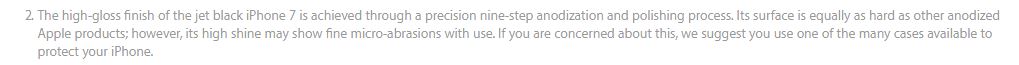 Pre niekoho horšou správou, ktorá súvisí s novým farebným variantom, je fakt, že iPhone 7 v prevedení Jet Black je náchylnejší na poškriabanie. Preto by ste ho mali nosiť v ochrannom obale. Informuje o tom samotný výrobca, ktorý to udáva v popise produktu. Pri ostatných farebných verziách toto upozornenie nenájdete.