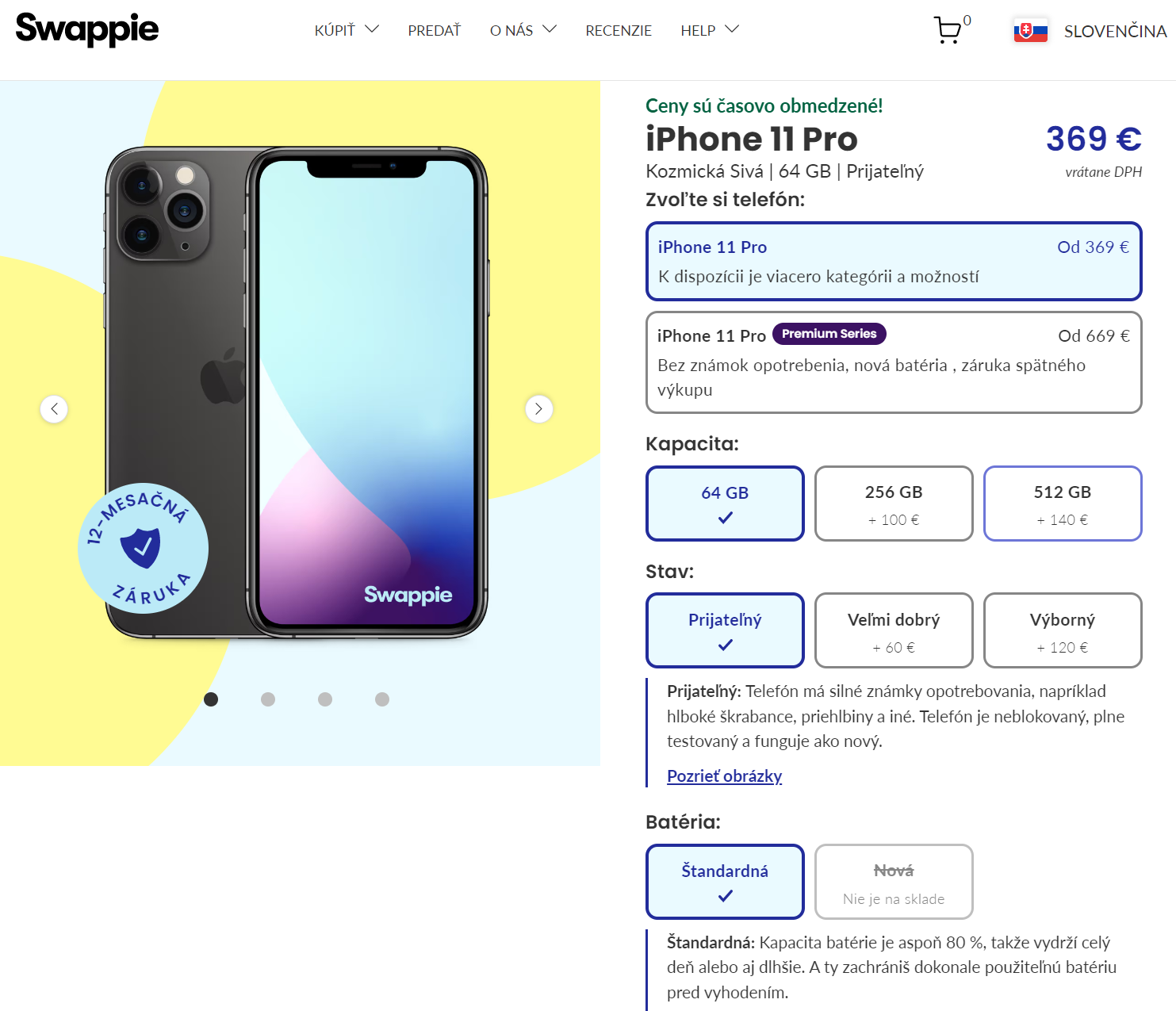Nie každý potrebuje iPhone ako nový a malé niekedy sotva badateľné ošúchania nebudú prekážkou. Swappie stále ponúka aj tradičné kategórie, pri ktorých si vyberiete stav smartfónu, prípadne doplatíte za lepší stav alebo batériu. A navyše dostávate záruku až na 12 mesiacov. Podľa firmy je u 32 % používateľov dôvodom na výmenu smartfónu práve batéria. Problémom je, že výrobcovia ich často menia a to sťažuje výmenu doma a o čoraz viac náročnej výmene vedia svoje aj profesionálne servisy.