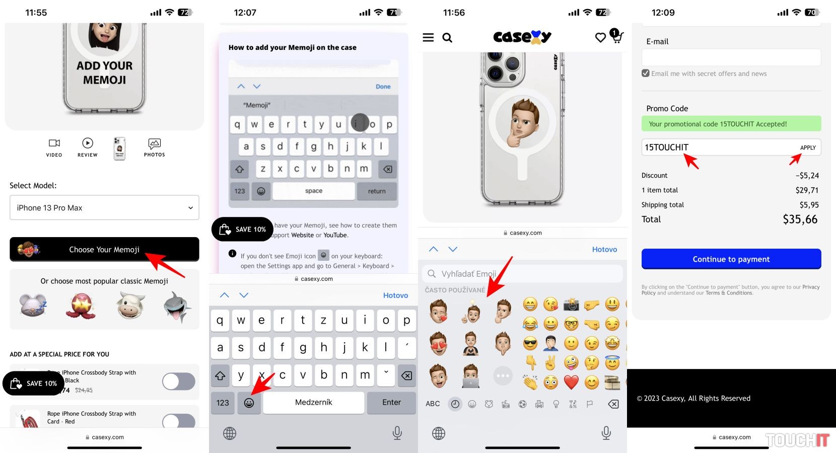 Tvorba obalu s memoji je jednoduchá. Na iPhone alebo iPade stačí otvoriť stránku casexy.com a vybrať si váš iPhone. V zozname iPhonov sa môžete prepínať aj medzi obalmi s podporou MagSafe nabíjania a bez neho. Následne si otvoríte softvérovú klávesnicu na iPhone, resp. iPade, prepnete sa do režimu smajlíkov a zvolíte si memoji, ktorý chcete mať na ochrannom obale.