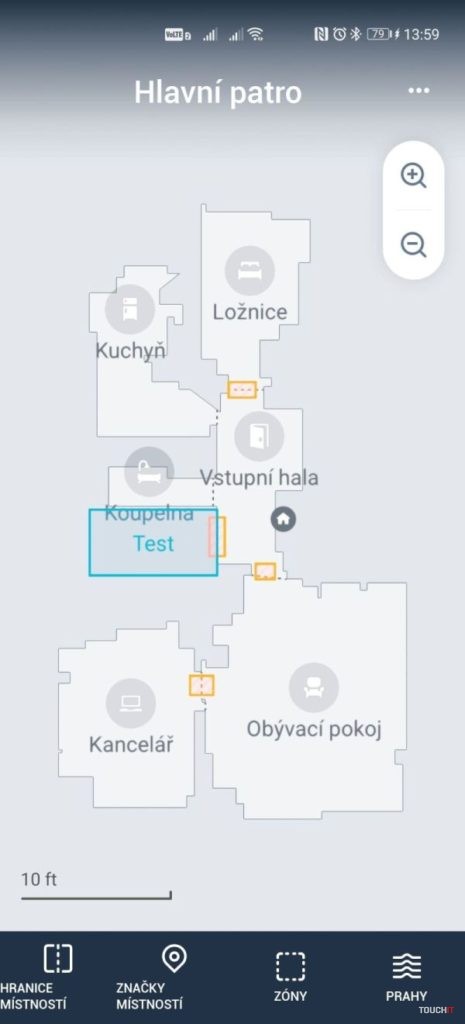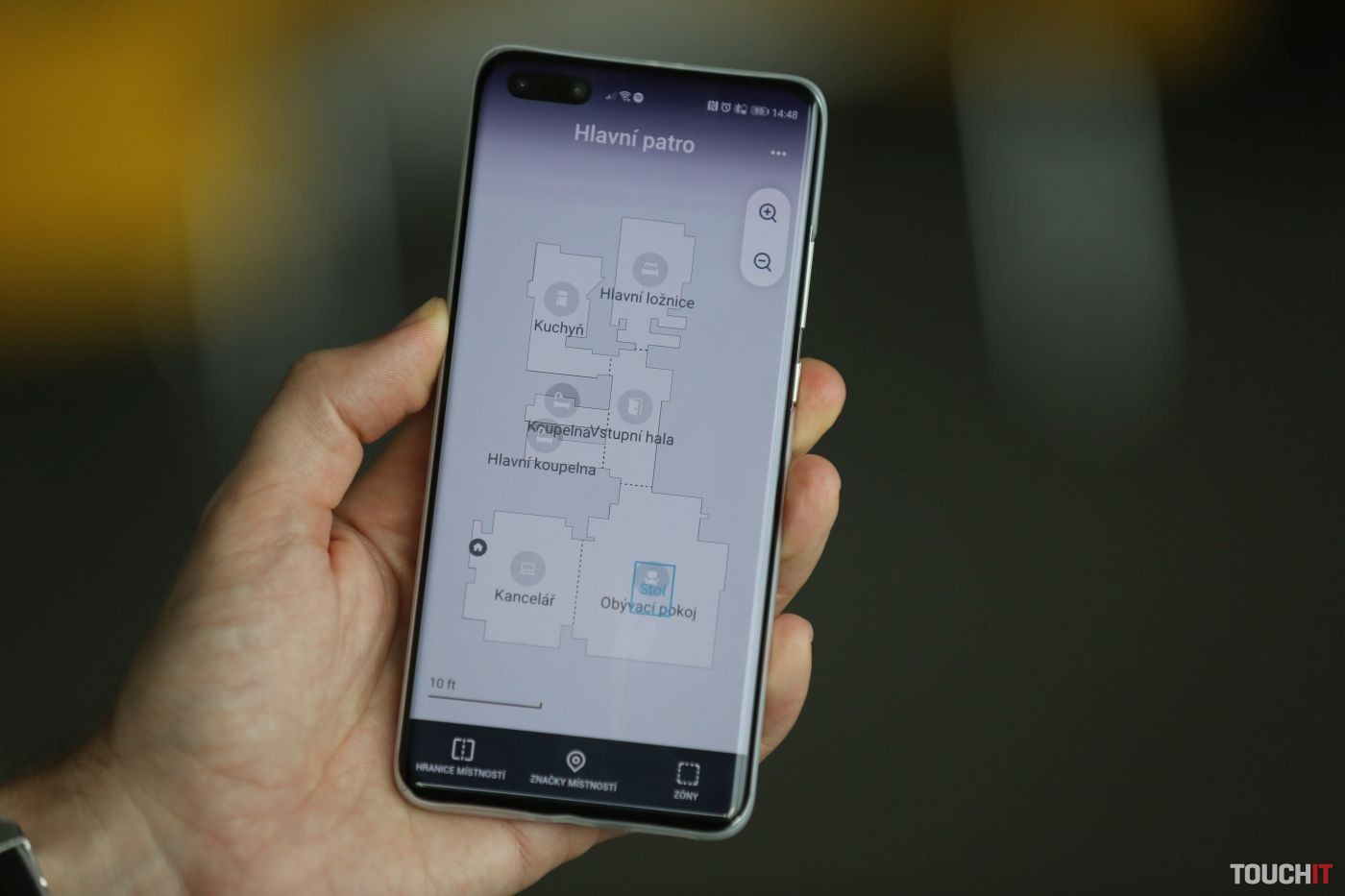Mapa našej domácnosti. Jednotlivé miestnosti si môžeme pomenovať, upraviť zóny medzi izbami a nastaviť si zóny, kam nemá robot chodiť upratovať alebo zóny, kam ho pošleme – napríklad aby neupratoval celú izbu, ale iba okolie sedačky. V prípade mopu je možné zadefinovať aj prahy a prinútiť mop, aby cez ne chodil
