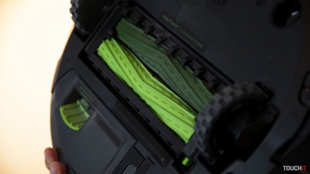 Pri pohľade na vysávač zospodu je všetko po starom. Základom sú dve široké gumené kefy, ktoré sú optimalizované na vysávanie všetkých povrchov a navrhnuté tak, aby nenamotávali vlasy či chlpy – toto je jedna z výhod iRobot vysávačov, ktorú môžem potvrdiť na základe testov viacerých vysávačov Roomba v rôznych podmienkach.