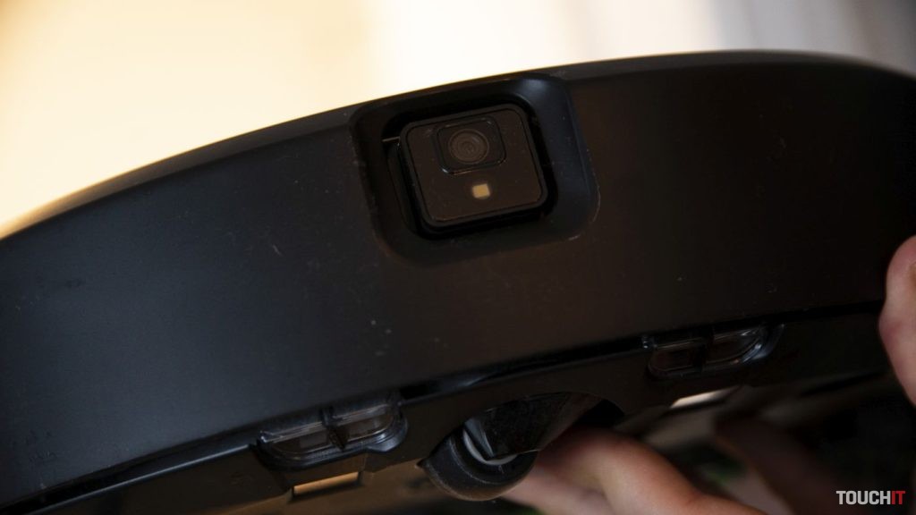Na hornej časti tela sa už nachádza iba jedno tlačidlo a nie tri, ako tomu bolo doteraz. A zmenilo sa aj umiestnenie kamery. V prípade Roomby i7+ bola zabudovaná v hornej časti. Roomba j7+ ju má vpredu, čomu je prispôsobený aj výrez v nárazníku. Toto riešenie považujem za praktickejšie, nakoľko vysávač má lepší prehľad o tom, čo sa nachádza priamo pred ním.