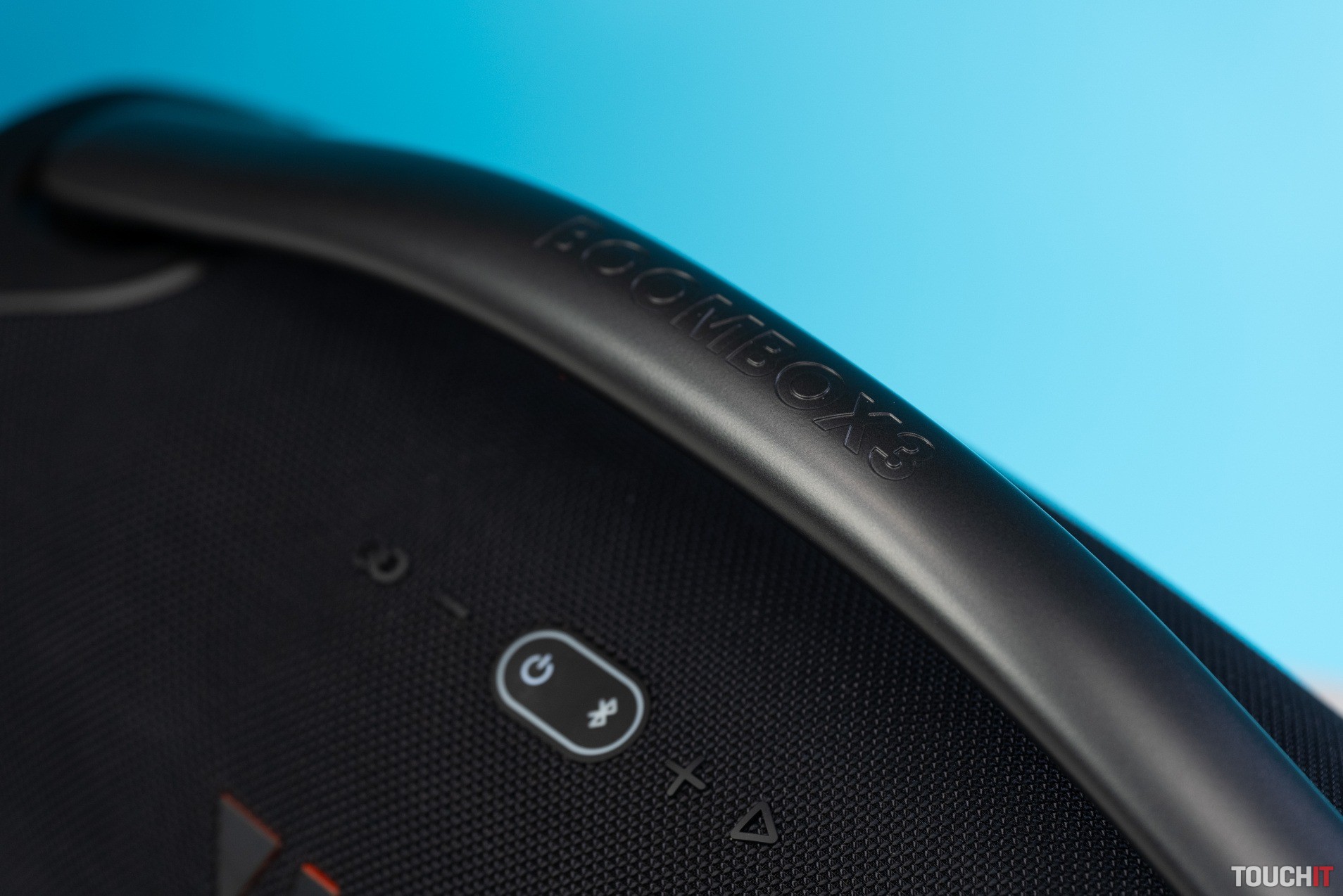 JBL Boombox3 vychádza z minulých modelov. Tvarovo aj hudobne. Na prenášanie je rukoväť z kovu a v spodnej časti je pogumovanie. Úchyt je spoľahlivý a vďaka gumovým výliskom sa nešmýka z ruky. Treba zobrať do úvahy, že reproduktor má hmotnosť 6,7 kg.