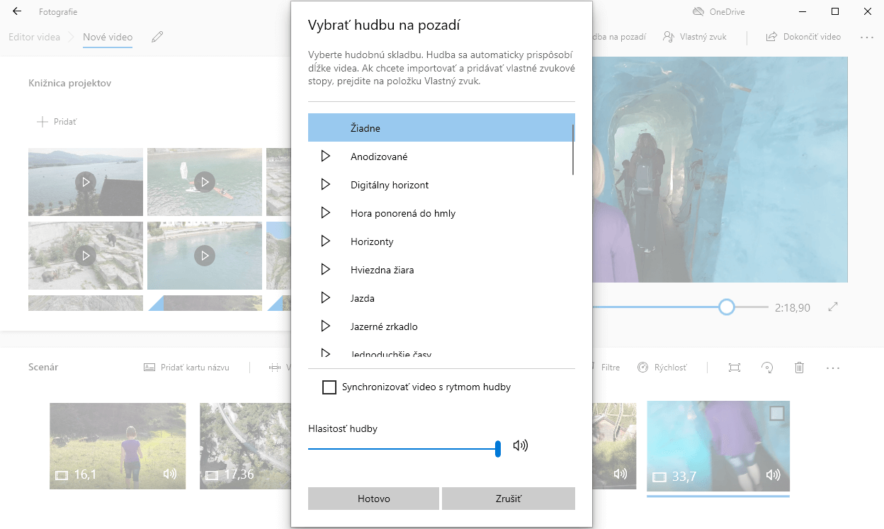 Pridávanie hudobného pozadiaVkladanie vlastnej zvukovej stopy alebo komentáru