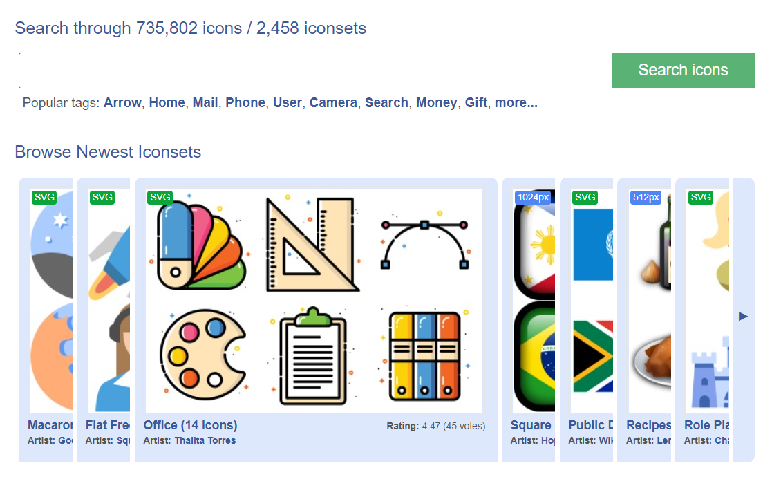 Tento druhy miniatúrnych no aj rozmerovo väčších obrázkov (napríklad 256 × 256 bodov) sa hodí nielen ako sprievodná grafika do dokumentov alebo prezentácií, ale aj na webové stránky. Fotobanky tu ale kombinujú trošku viac ako inde materiály zadarmo a spoplatnené, nejakou formou alebo s požiadavkou uviesť zdroj.
