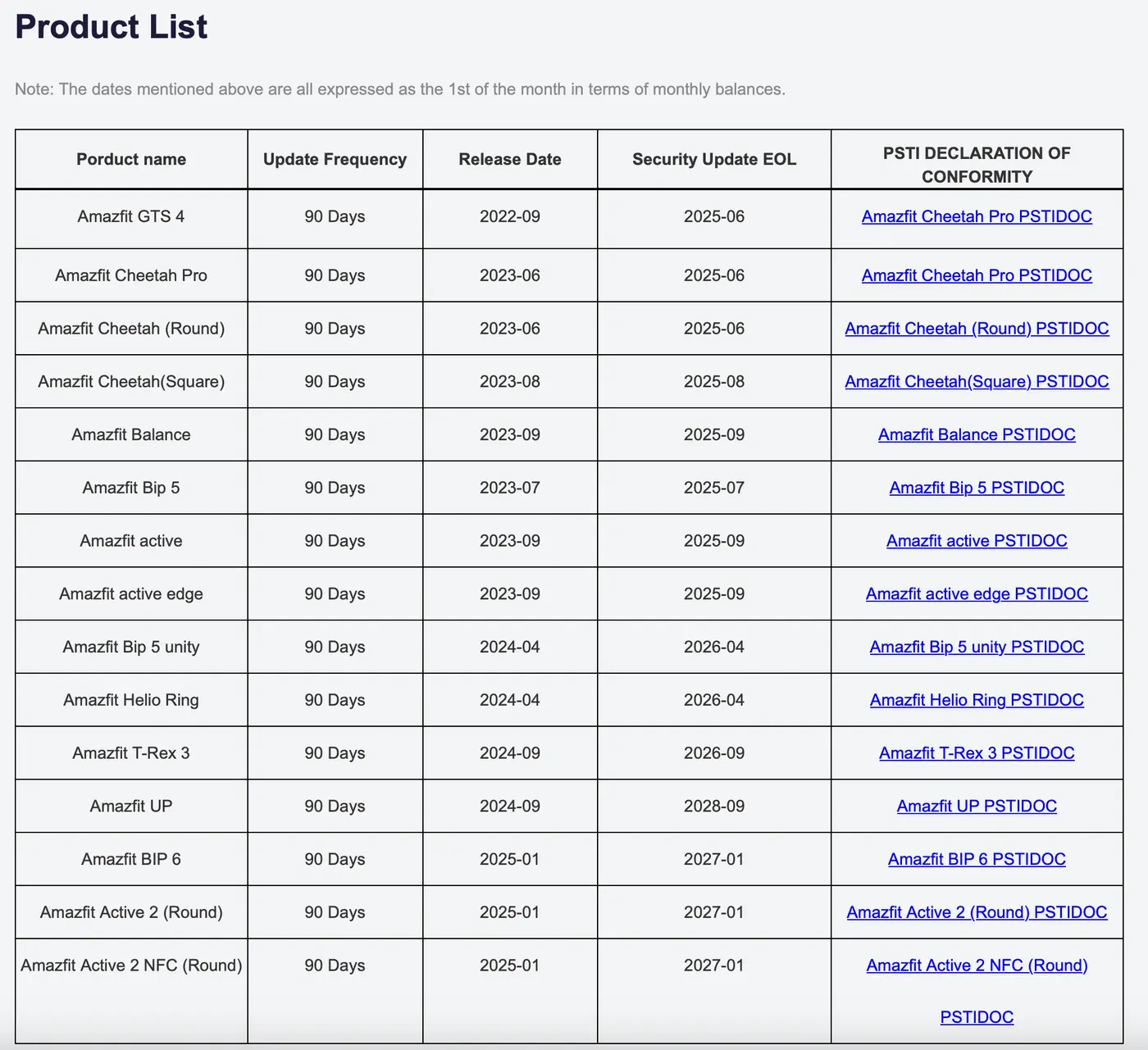 Podpora Amazfit hodiniek bola v minulosti takisto nejednoznačná, avšak po novom si ju môžete skontrolovať na oficiálnom webe výrobcu. Webová stránka obsahuje informácie o hodinkách, ktoré už nie sú podporované, ako aj o modeloch, ktoré majú ešte stále aktívnu podporu. V ich prípade je uvedený aj dátum ukončenia softvérovej podpory.