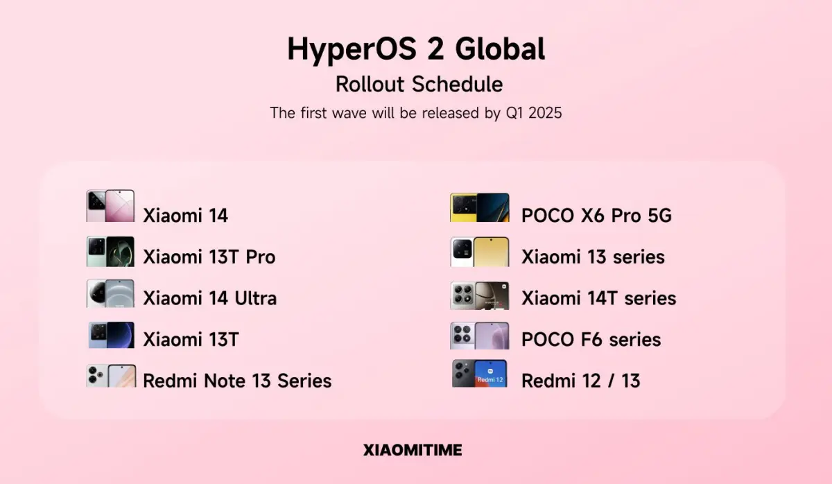 Prvé zariadenia by podľa tohto plánu mali byť aktualizované z HyperOS na HyperOS 2 v priebehu štvrtého kvartálu 2024, teda v novembri či decembri. Bližšie určený tento rámec nie je, avšak vieme, že sa bude týkať modelov Xiaomi 14 a Xiaomi 13T Pro. Ďalšie telefóny by mali byť aktualizované až začiatkom roka 2025.