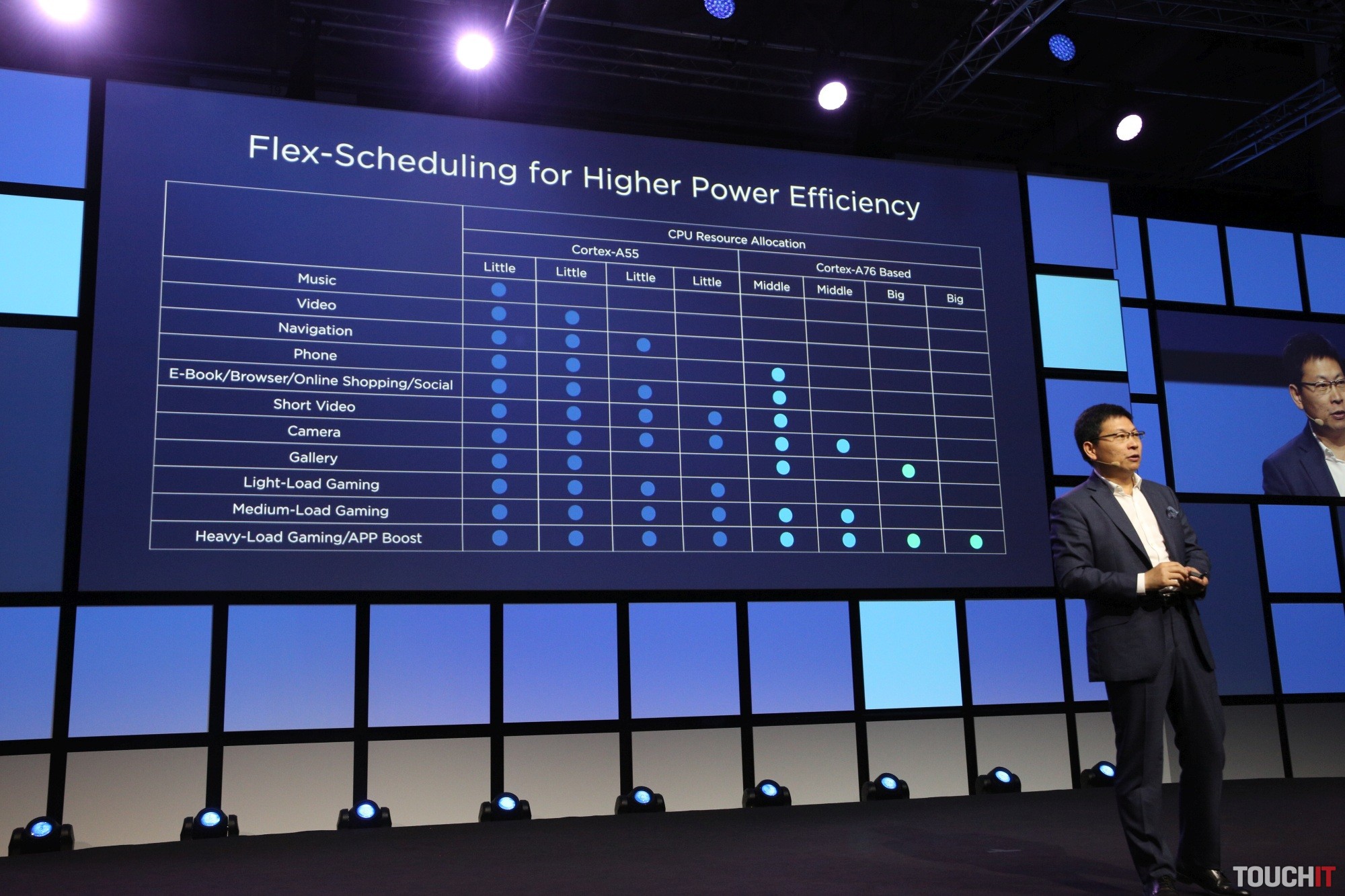 Kirin 980 sa tiež chváli duálnou neurónovou jednotkou a novou architektúrou, ktorá kombinuje dve vysokovýkonné jadrá Cortex-A76 s taktom 2,6 GHz, dve jadrá s taktom 1,92 GHz pre stredne náročné operácie a 4 jadrá Cortex-A55 s taktom 1,8 GHz pre energeticky efektívne úkony. Využitie jadier riadi podsystém Kirin CPU s technológiou Flex-Scheduling, ktorá prideľuje aktuálnym úlohám a aplikáciám jednotlivé jadrá. V praxi by to malo znamenať, že nový procesor využíva výkon flexibilnejšie a efektívnejšie.