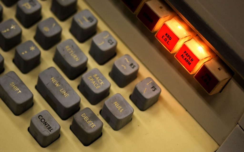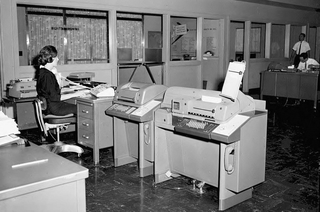 Teletypy v telekomunikačnej spoločnosti Bell Telephone & Telegraph v roku 1964Teletype Model 28