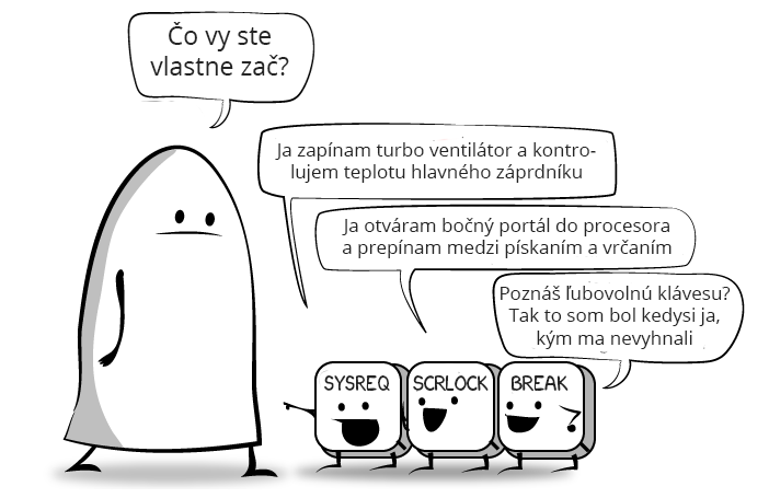 Trojica kláves, ktorá sa obvykle zaprášene týči niekde nad tlačidlom Delete, je pre mnohých mystériom. Čo preboha vôbec znamenajú tie nápisy PrtSc/SysRq, Scroll Lock a Pause/Break?