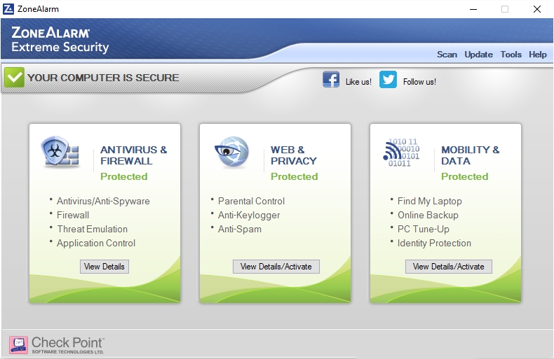 Toto je najvyššia verzia aplikácie ZoneAlarm. Výrobca má v ponuke stále svoj legendárny firewall, ktorý mnohí poznajú ešte z čias Windows 98. Pochopiteľne, na rozdiel od tohto operačného systému, ho výrobca udržiava a ponúka dnešné štandardy.