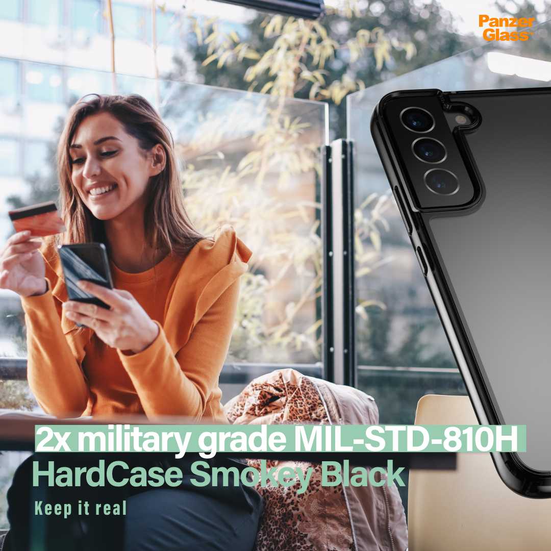 Pre zákazníkov, ktorí chcú pre svoj telefón z rady Samsung Galaxy S22 tú najvyššiu možnú úroveň ochrany, si PanzerGlassTM pripravil obal HardCase. Ten disponuje dvojnásobnou certifikáciou Military Standard garantujúcou nadpriemernú odolnosť. Kryt pozostáva z priehľadnej zadnej časti a TPU rámiku na okrajoch zariadenia. Napriek tomu, že je mimoriadne odolný, nenarúša estetiku zariadenia. Práve naopak, dizajn telefónu necháva pekne vyniknúť. Vďaka antibakteriálnej úprave dokáže v priebehu 24 hodín účinne eliminovať všetky nežiadúce mikroorganizmy na svojom povrchu.