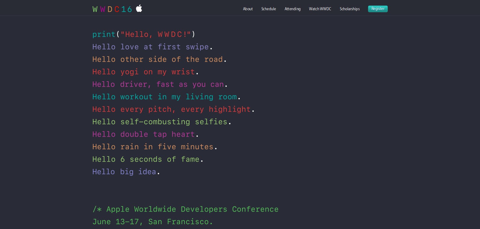 Pripomeňme, že oficiálna cena lístka na konferenciu WWDC je 1599 USD a záujem bol aj tento rok tak veľký, že lístky sa predávali cez lotériu. Pre účastníkov je to šanca na osobné stretnutie sa s Apple inžiniermi, sú tu workshopy a podrobné softvérové predstavenia. Práve kľúčová prednáška o 19. hodine uvádza vo všeobecnej rovine všetky nové produkty a dáva základ celej konferencii. Tá sa začína dnes a trvá do 17. júna 2016.