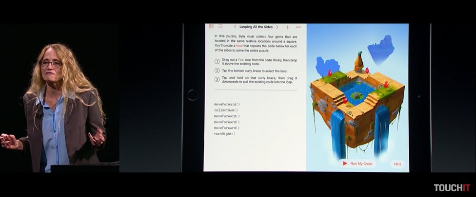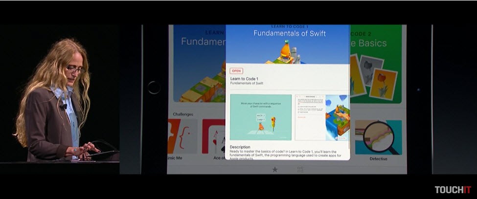 20:46 : Na scéne je opäť Tim Cook a hovorí o programovacom jazyku Swift, ktorý je teraz dostupný na iPade