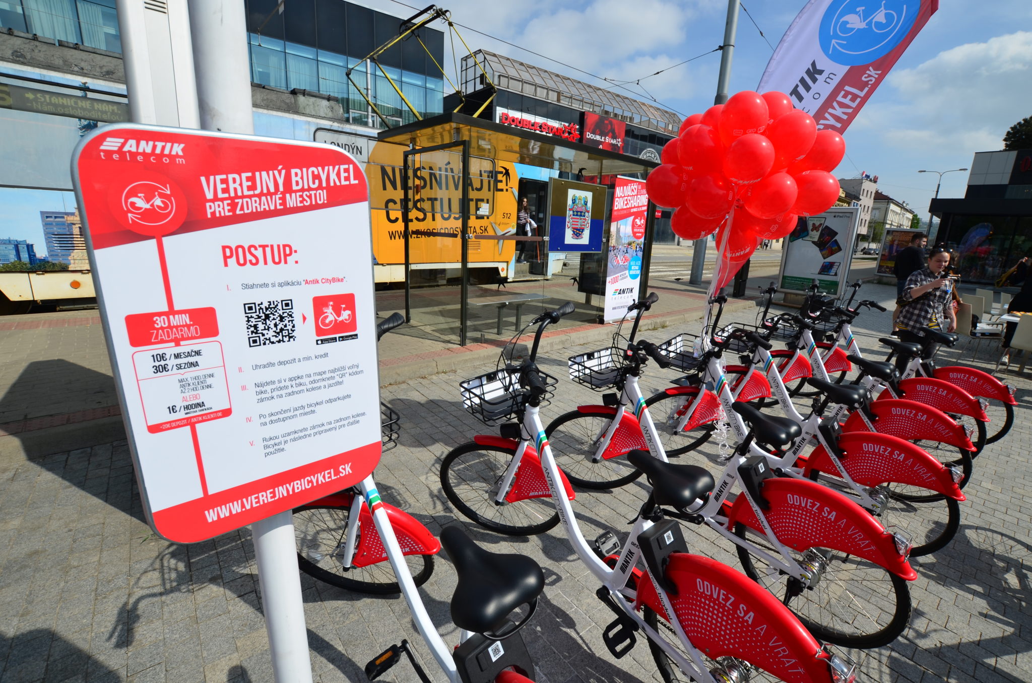 V Košiciach spustil Antik Telecom komerčnú prevádzku systému požičiavania bicyklov. Bikesharing pod názvom „Verejný bicykel“ je plne ovládateľný z mobilného telefónu a umožňuje požičať a vrátiť bicykel kdekoľvek na území mesta bez potreby vyhľadávať stanoviská. Jednoduchý cenník zahŕňa paušál pre občasných používateľov za 1 eur/hod. s minútovou tarifikáciou, mesačný paušál za 10 eur, alebo cenovo najvýhodnejší sezónny lístok v cene 30 eur. V oboch je možné využiť hodinu bicyklovania denne v cene paušálu, pričom klienti Antiku môžu používať vozidlo 2 hodiny denne. Všetci klienti po prvej registrácii môžu jazdiť 30 minút zadarmo.