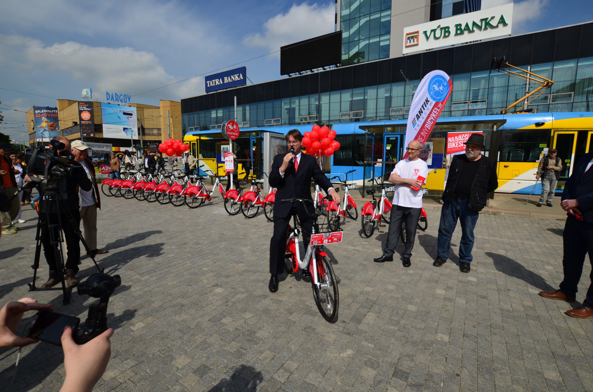Bikesharing slávnostne spustil Marcel Giboda, námestník primátora mesta Košíc, Ladislav Rovinskéhy poslanec MsZ Košíc, šéf Cyklistickej únie mesta Košíc Karol Labas a generálny riaditeľ Antik Telecom Igor Kolla