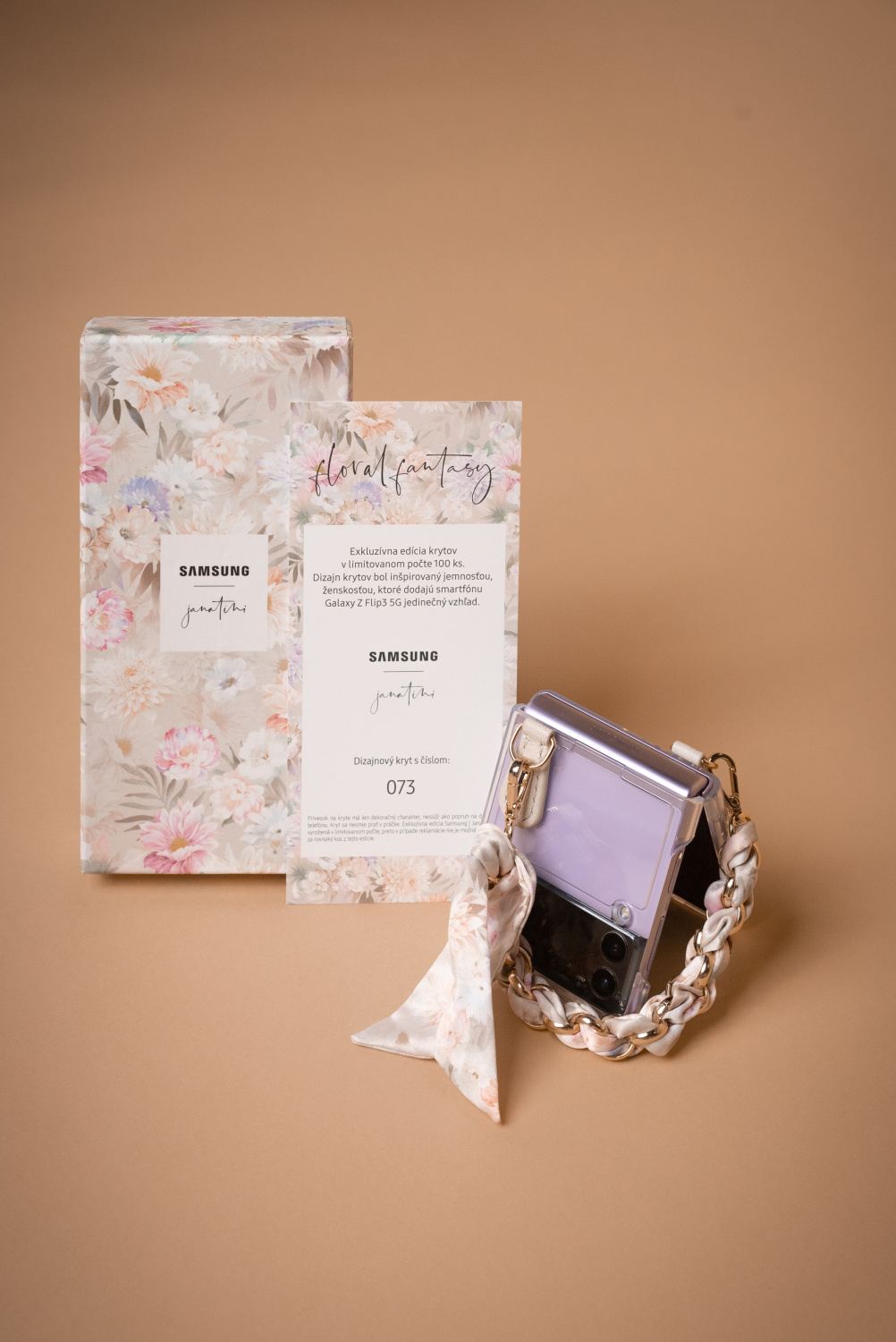 Tak, ako je jedinečný skladací telefón Samsung Galaxy Z Flip3 5G, je jedinečné aj dizajnové puzdro z prísne limitovanej edície. To telefón nielenže spoľahlivo ochráni, ale dodá mu aj nezameniteľný vzhľad a štýl. Limitovanú edíciu Floral Fantasy navrhla slovenská dizajnérka a jedna z najvplyvnejších slovenských influenceriek v oblasti módy Jana Tomas.