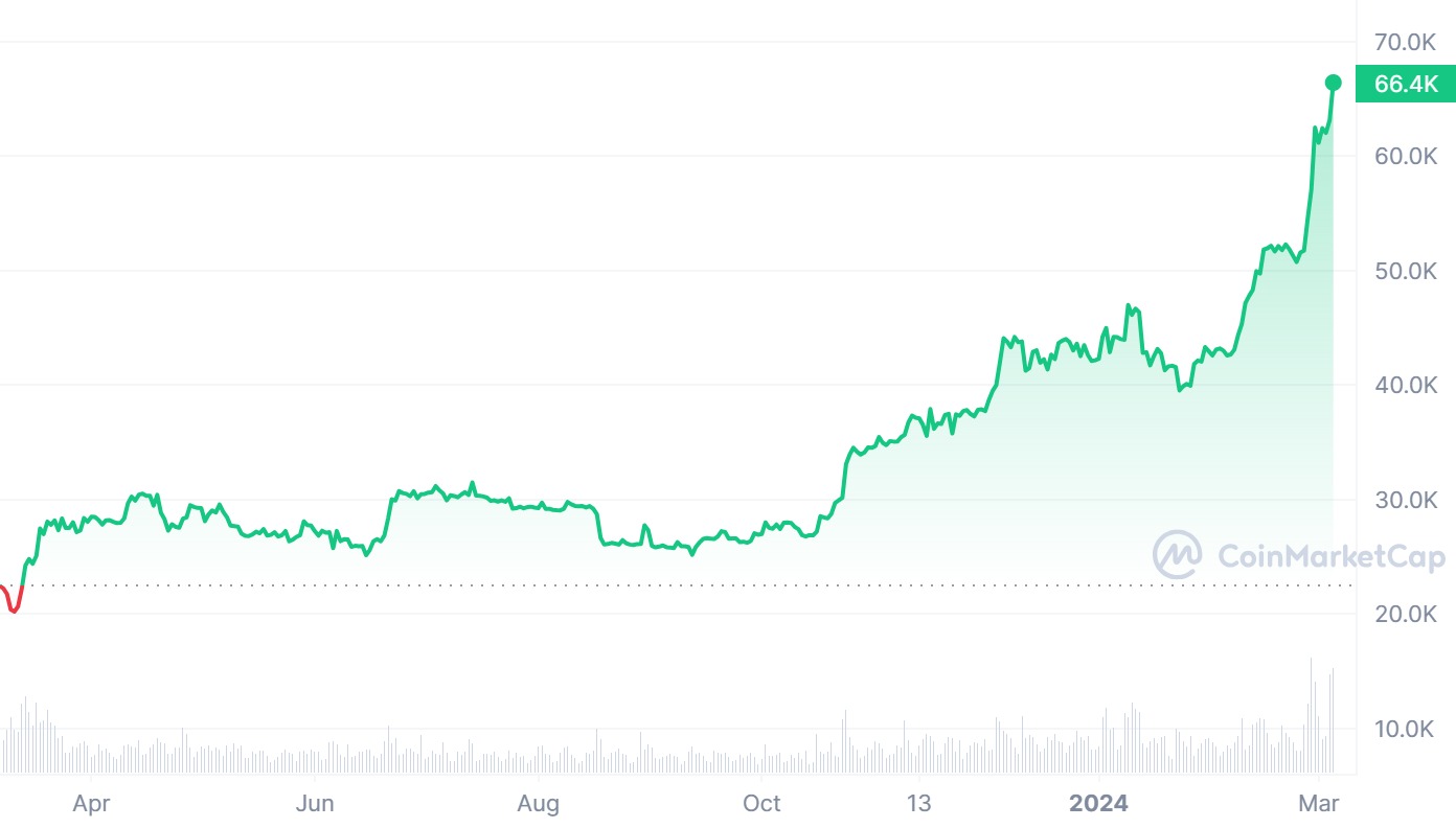 Zvyšovenie ceny kryptomien možno pripísať dvom faktorom. Jedným z nich je blížiaci sa halving, ktorý tu bude o necelé dva mesiace. Odhadovaný deň je podľa halvingového odpočtu vzhľadom na vyťažené bloky predpokladaný na 19. apríla 2024. Ide o plánovanú udalosť, ktorá je súčasťou bitcoinovej siete a znamená zníženie odmeny za ťažbu a overovanie nových blokov o polovicu. Ťažiari zarobia len polovičný počet Bitcoinov a tým sa logicky zdvihne cena samotnej kryptomeny.