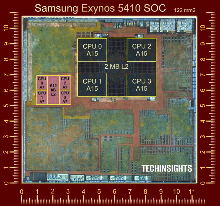 Rez čipom Samsung Exynos 5 Octa, model 5410 (Autor: Techninsights)