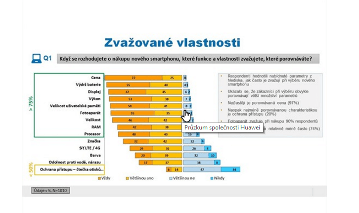 Štúdiu si nechala vypracovať spoločnosť Huawei prostredníctvom agentúry STEM/MARK tento rok v júni. Zameraná bola na český trh a zapojilo sa do nej 1 010 respondentov (52,2% mužov a 47,8% žien) starších ako 15 rokov.