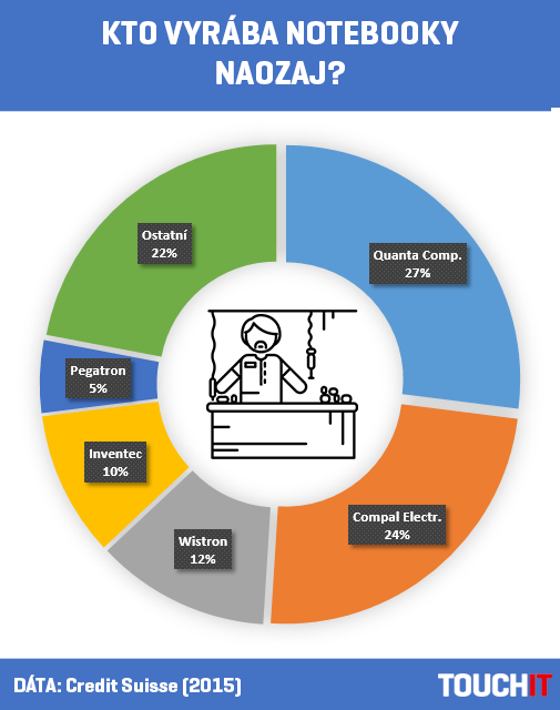 Aj keď nablýskané logá spoločností HP, Lenovo, Asus či Acer máme na svojich notebookoch všetci a rôzni používatelia sa vedia rozhádať aj do krvi o tom, ktorý výrobca je ten najlepší a najkvalitnejší, notebooky ako také vyrába niekto úplne iný.