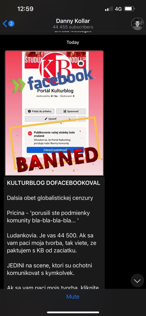 Kulturblog možno poznáte a aktivita tejto facebookovej stránky nezostala bez povšimnutia ani spoločnosti Meta. Ten jej dnes zastavil prístup ako sám Kulturblog uvádza na svojom telegramovom profile. Z informácie sa teraz nedá určiť, či ide o dočasný zákaz publikovania na Facebooku alebo ide o trvalé zablokovanie účtu. Stránka sa nedá na sieti vyhľadať. Po upozorneniach zo strany FB prišlo rýchle zablokovanie. Vzhľadom na aktivity na stránku aj ich frekvenciu nie je takto rýchle konanie prekvapivé.