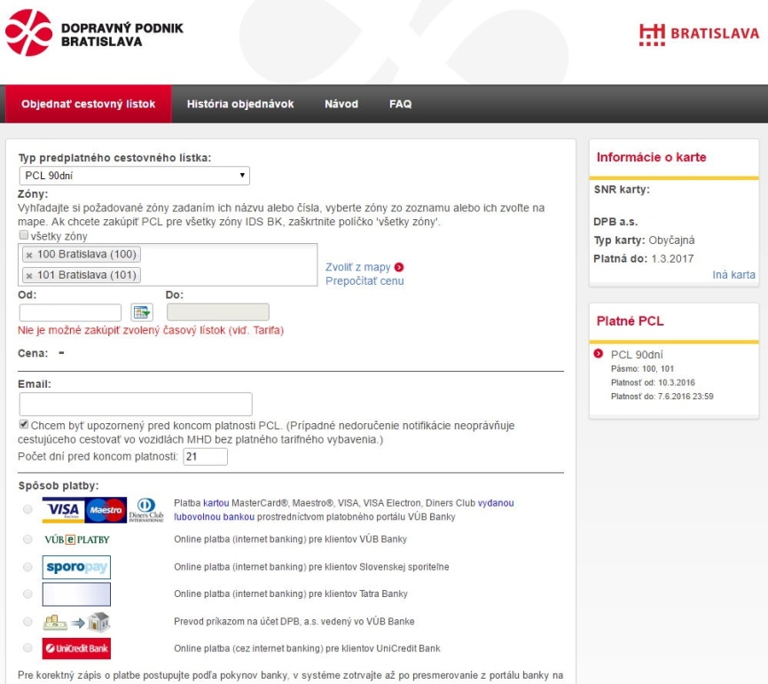 Situácia v oblasti kúpy lístkov pre MHD je trochu iná. Z princípu. Je to typ cestovania, ktorý nie je potrebné viazať nejakým objednávaním vopred a (minimálne v Bratislave) nastúpite do spoja, ktorý práve ide. Situácia je pomerne dobrá v oblasti predplatených kariet, či inak povedané mesačníkov a aj to len v Bratislave alebo Košiciach. Takúto kartu si môžete kúpiť on-line alebo na obchodnom mieste a potom ju dobíjať. To je hlavná výhoda.