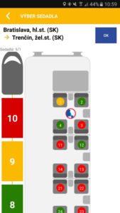 - Výber typu cestujúceho a miesto – okno – stred – chodba