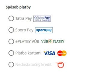 - Potom už pokračujeme k platbe a vyberieme si spôsob platby