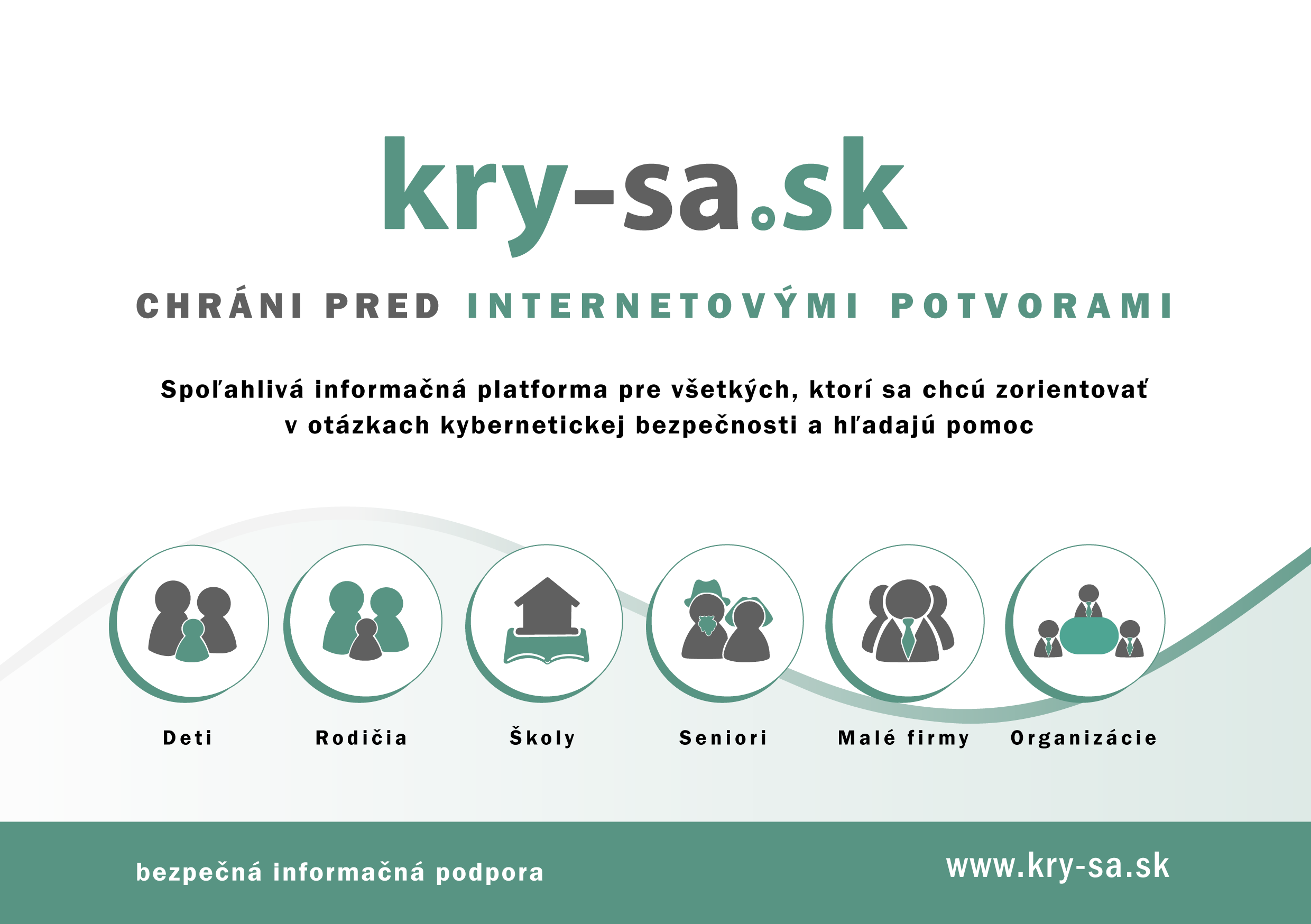Jednou z najväčších výziev v oblasti kyberbezpečnosti Slovenska je nedostatočná informovanosť verejnosti. Práve s touto výzvou sa popasuje projekt Kry-sa!. Jeho základnou platformou bude webstránka www.kry-sa.sk, ktorá má slúžiť ako primárny informačný zdroj s informáciami o rizikách a hrozbách, ktoré sú spojené s využívaním internetu a digitálnych technológií, ako aj tipy ako sa chrániť a poradňu pre obete kyberzločinu.