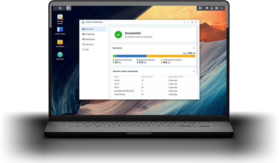 Pre ešte väčšiu bezpečnosť môžete použiť bránu Firewall v Ovládacom paneli a povoliť verejné porty pre služby iba v prípade potreby. Povolenie dvojfaktorovej autentifikácie môže zabrániť neoprávneným pokusom o prihlásenie. Nastavením snímkov zdieľaných zložiek pomocou balíčku Snapshot Replication (zoznam podporovaných zariadení) dosiahnete, že bude Synology NAS odolné voči ransomvéru, ktorý je založený na šifrovaní.
