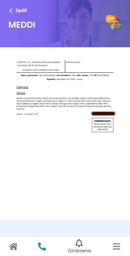 Po vyšetrení dostanete lekársku správu so zhodnotením vášho stavu presne tak, ako keby ste boli za lekárom osobne. Ak je to potrebné, lekár vám predpíše aj e-recept, ktorý si vymeníte v najbližšej lekárni.