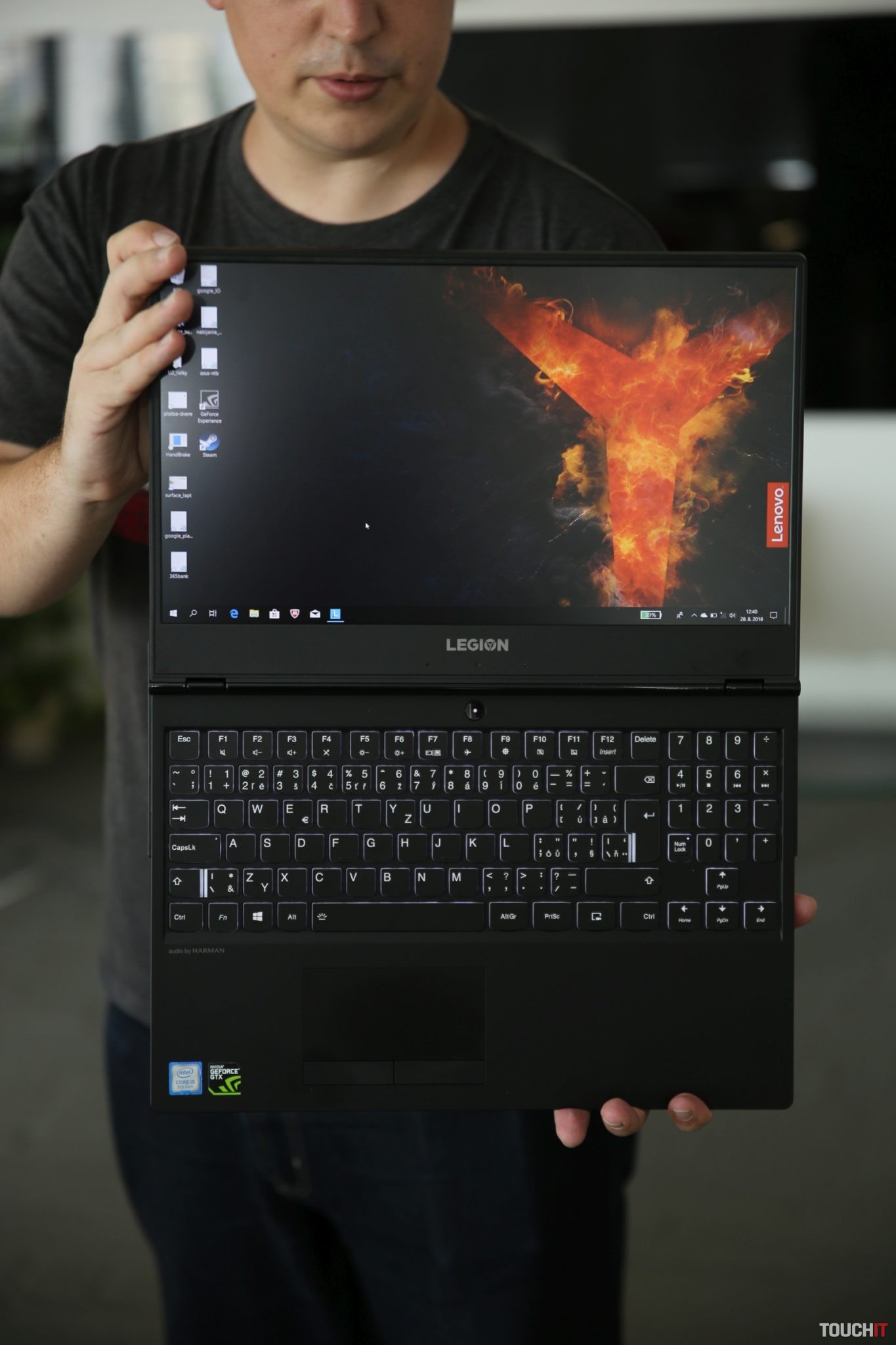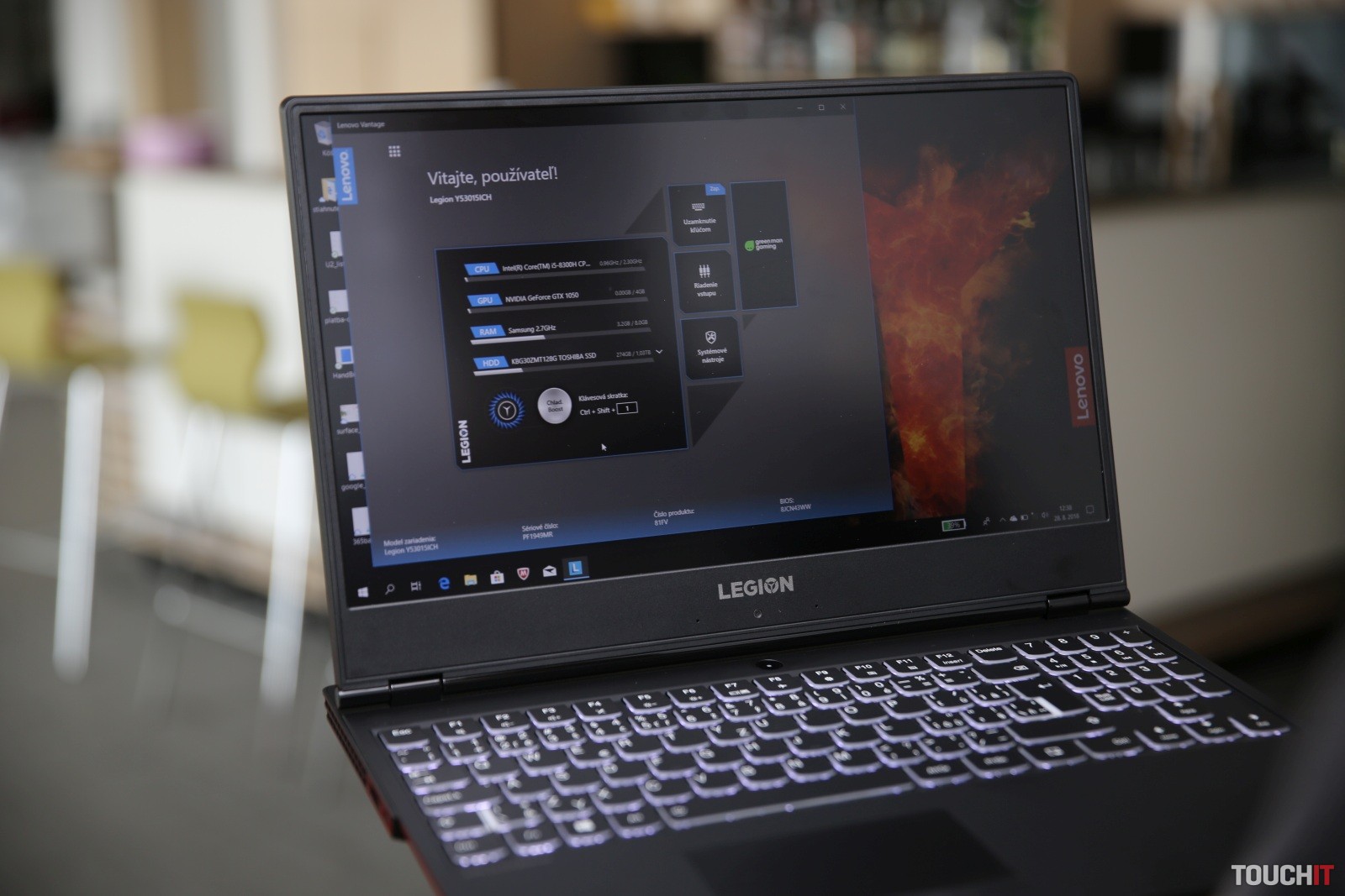Všimnite si podsvietenú klávesnicu a softvér Lenovo Legion