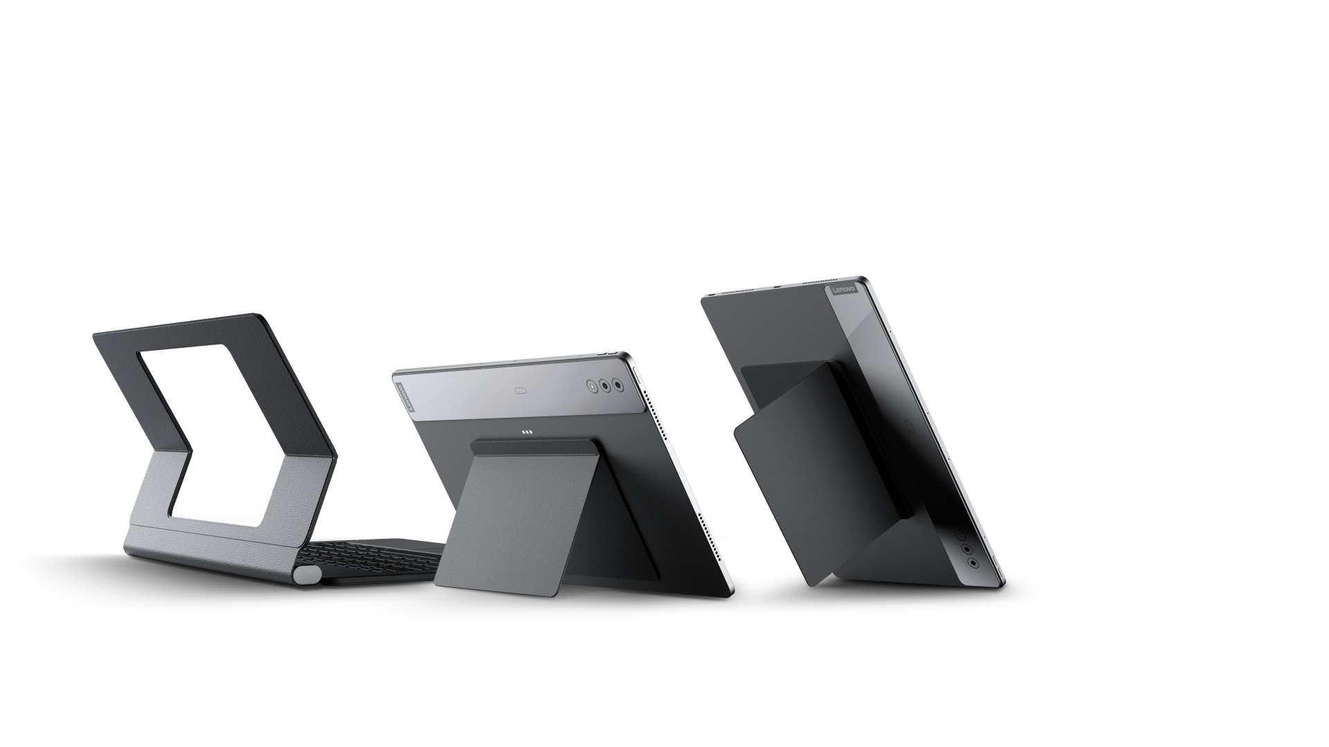 Zaujímavosťou je stojan s dvoma režimami, ktorý sa magneticky pripevňuje k zariadeniu a umožňuje meniť horizontálnu a vertikálnu podobu. Skutočná inovácia sa však skrýva v klávesnici s dvoma pántmi, na ktorú možno tablet pripevniť a následne prispôsobiť polohu na pohodlnú prácu. Je to zážitok ako v prípade notebooku s pripojenou plnohodnotnou podsvietenou klávesnicou, zatiaľ čo hlavný pánt stojana vytvára v zatvorenom stave ochranný úložný priestor pre priložené pero Lenovo Precision Pen 3. Pero je na ráme držané magneticky.
