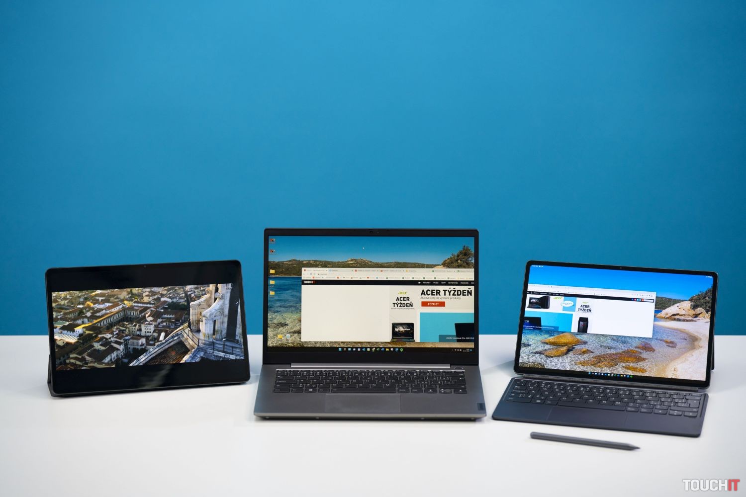 Režim prenosného počítača, na ktorý môžete tablet premeniť, si najlepšie vychutnáte v kombinácii s oficiálnym ochranným obalom so zabudovanou klávesnicou a touchpadom. Tá však nie je súčasťou základného balenia a treba si ju dokúpiť samostatne.