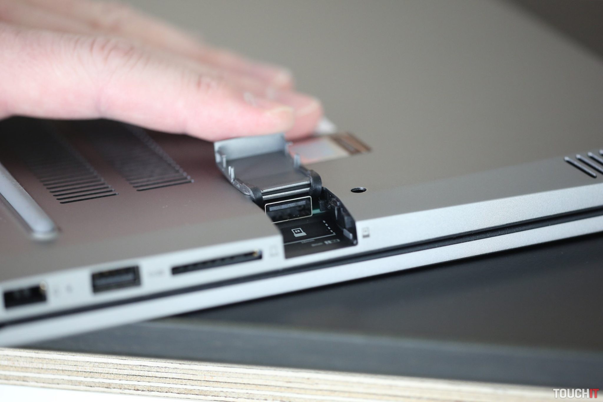 Odlišností je viac a je pochopiteľné, že toto nie je ThinkPad. Je to ale ideálny adept pre tých, čo chcú pevný notebook, navrhnutý spoľahlivým systémom, no po zohľadnení ceny vedia oželieť top vlastnosti rodiny ThinkPad. A nejde len o legendárny touchpad s tlačidlami myši alebo trackpoint. V minulosti sme testovali 13,3“ verziu tohto notebooku a prekvapila nás. Recenziu na ThinkBook 13s si môžete prečítať tu. Popravde, keď firma prichádza s novou sériou svojich notebookov a nedrží sa osvedčeného štandardu, nebývame z toho vždy nadšení a prorokujeme viac problémov ako úžitku. Špecialitou tohto modelu je skrytý USB 2.0 port. Iste, kvôli tomuto si notebook nekupujete ale ako nápad a pridaná hodnota, to pocítite. Najmä tí z vás, čo s notebookom častejšie cestujú a majú obavy, že si aj cez nano prijímač myši omylom vytrhnú celý konektor. Tu je konektor skrytý a tak môžete mať nano prijímač stále zapojený bez rizika, že s ním niekde zavadíte. Skrátka a dobre – vynikajúci nápad, ktorý sme ešte nikde inde nevideli.