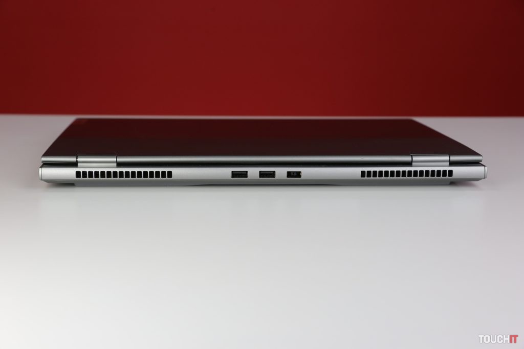Poriadna tehla, ale dodá počítaču dostatok energie pri vysokom výkone. Ja som nameral odber 110 W pri najvyššom zaťažení, aké som vedel na notebooku spraviť. Na prenášanie je to trochu veľa. Skrátka, je to veľký notebook so 16“ uhlopriečkou displeja a 2K rozlíšením. Všetko má svoje opodstatnenie, len tvrdím, že treba počítať s tým, že takáto pracovná stanica bude v praxi vyžadovať iné návyky. Čo je ale vynikajúce a skutočne návykové, je práve napájanie zo zadnej strany. Tam je totiž šachta na obdĺžnikový konektor Lenovo, vedľa aj dva USB 3.2 porty. Bolo to o zvyku, pripojenie zariadení vyžadovalo sklopiť veko displeja, no potom už nezavadzali na boku notebooku. Na boku sú potom USB-C a ďalšie porty.