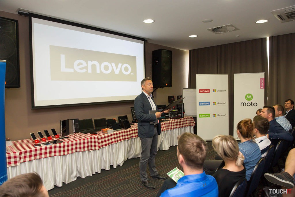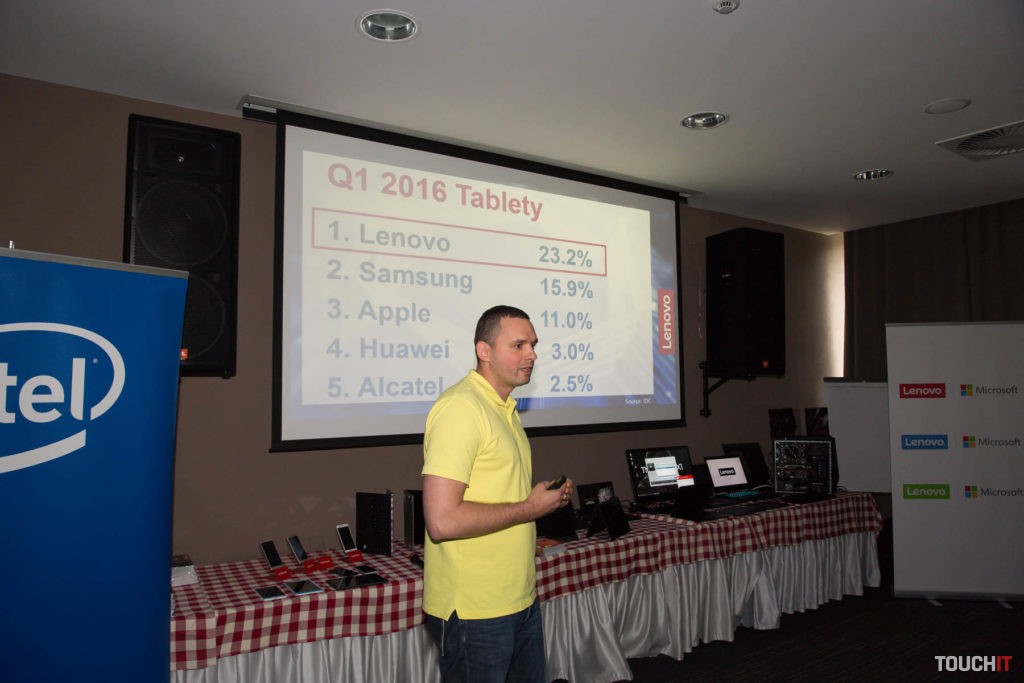 Marrk Tóth z Lenova prezentoval úspechy v mobilnom segmente. Hlavne v prípade smartfónov na Slovensku je pozícia číslo 2 veľmi pozitívna. Rovnako sa dobre darí Lenovu aj v oblasti tabletov, pričom tu mu patrí prvé miesto.