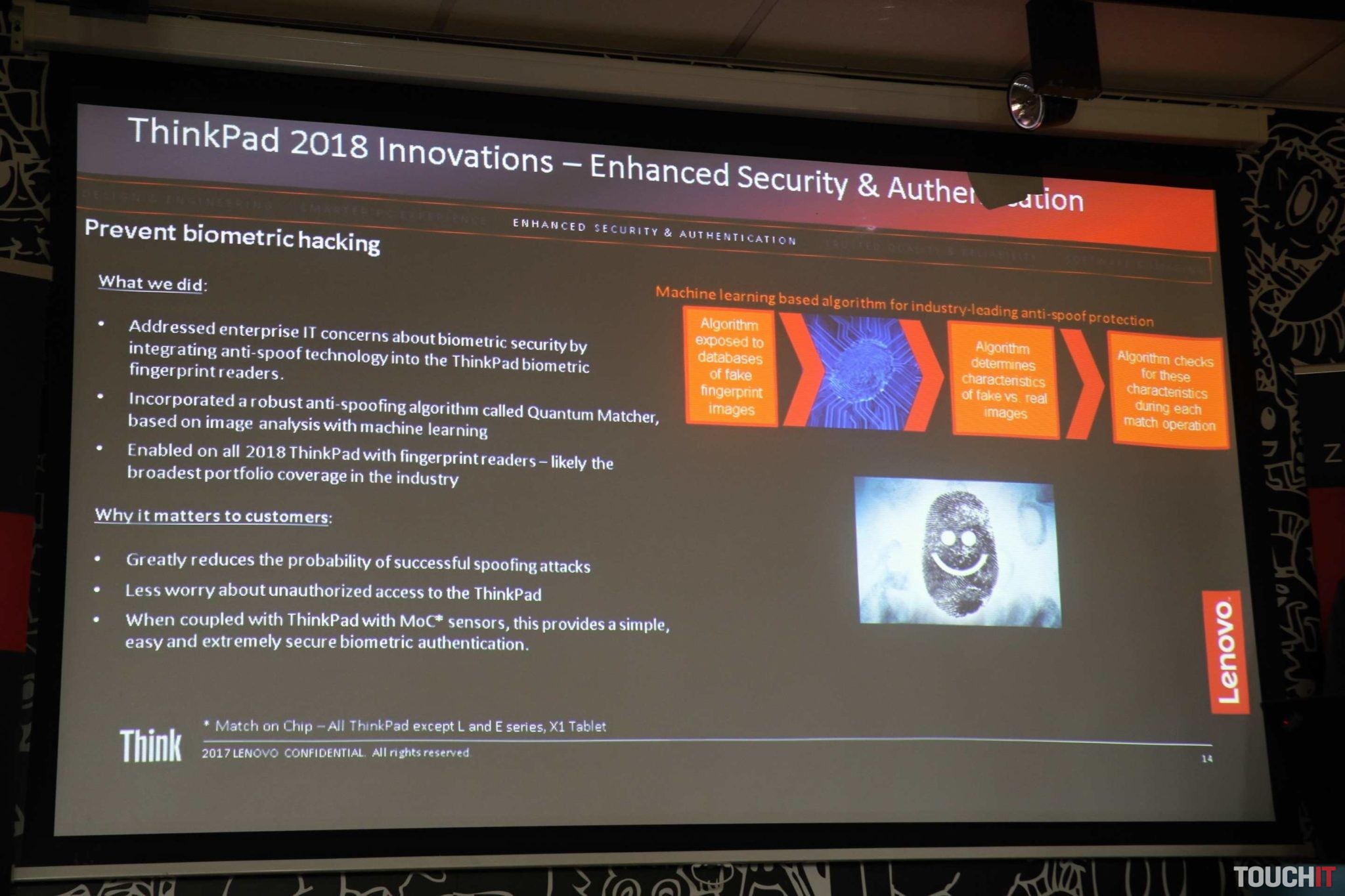 Čítačka odtlačkov bola vylepšená o funkciu, ktorá zabraňuje zneužitiu odtlačkov. Ak saporežete a prihlásite sa do notebooku s takýmto prstom, systém očakáva rovnaký rez aj na ďalší deň. Zamedzí sa tým kradnutiu odtlačkov a pokusom o podvody.