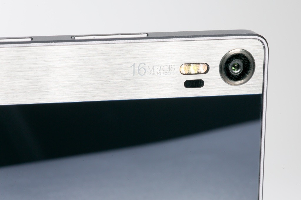 Z hľadiska fotenia je tu 16 MPx zadný fotoaparát s LED bleskom, clonou F2.2 a optickou stabilizáciou. Používateľ si môže prepínačom na hornej strane vybrať buď jednoduché fotenie, alebo detailné manuálne nastavenie. V režime Pro si manuálne vyberáte zaostrenie, dobu expozície, ISO či nastavenie bielej. Rovnako sa dá vybrať niektorý z vopred predvolených režimov – HDR, panoráma, zaostrenie na hlavný objekt s rozostretým pozadím, panoramatická selfie alebo umelecká nočná fotografia.