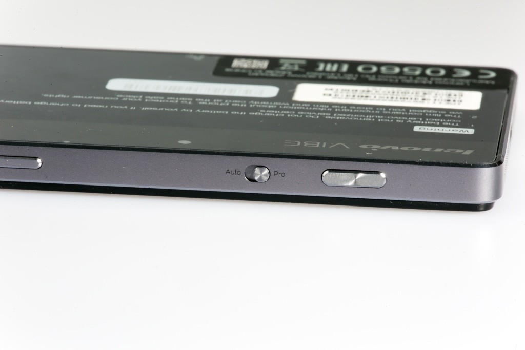 Na boku telefónu sa nachádza prepínač režimu fotenie Auto a Pro ako aj hardvérová spúšť fotenia