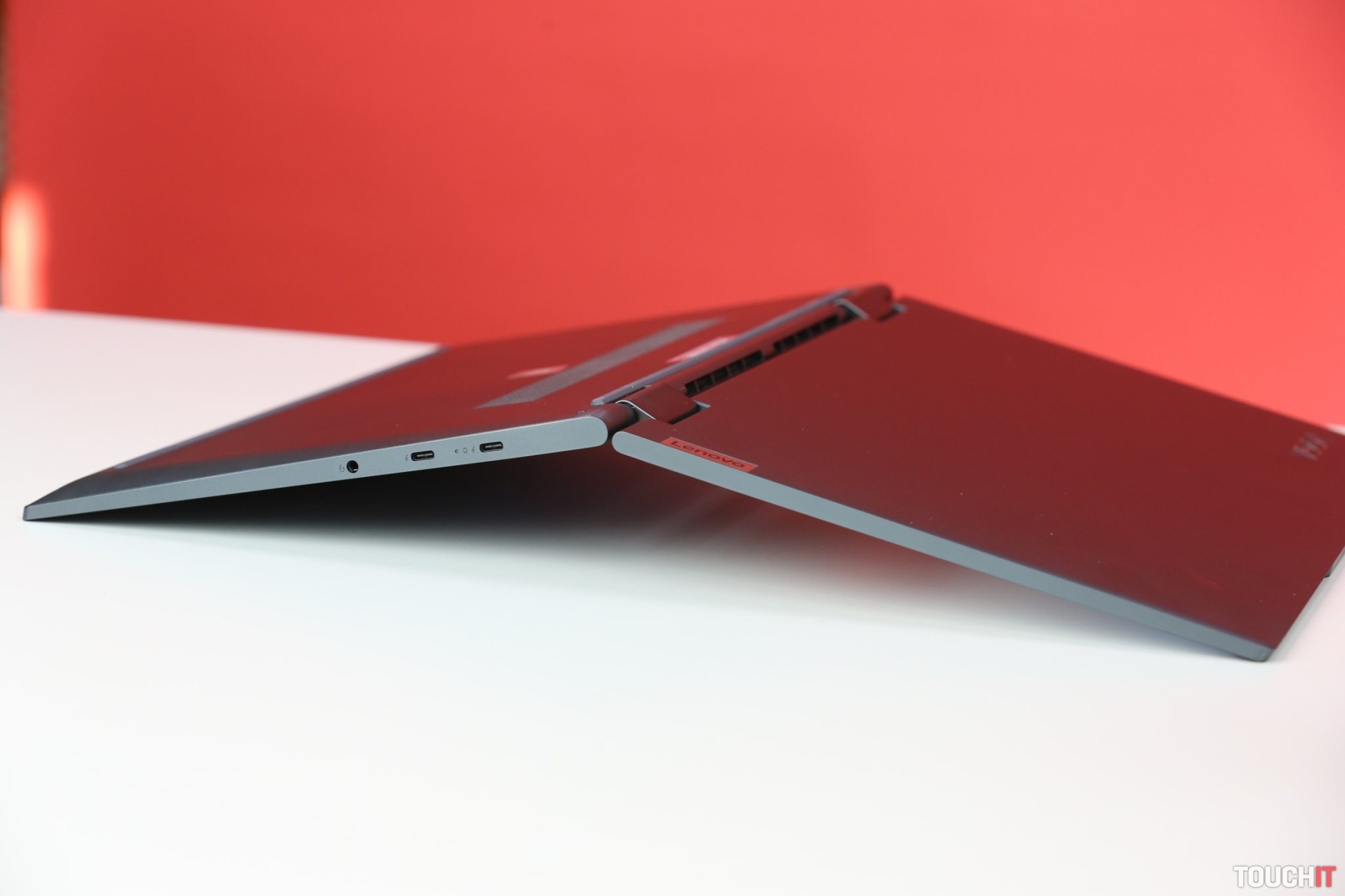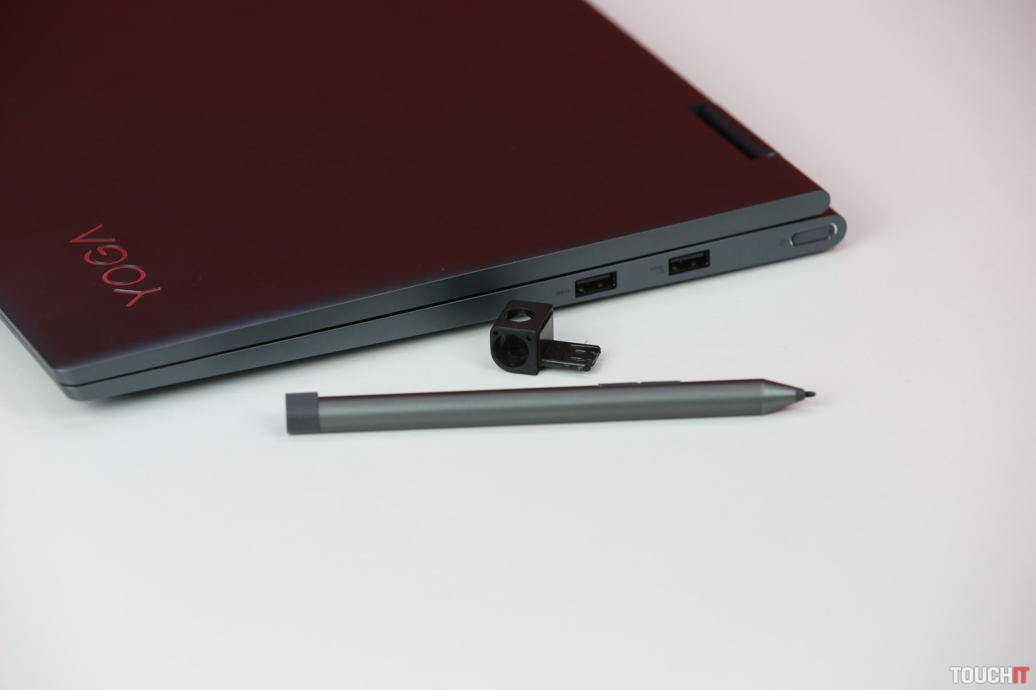 Kĺb displeja je pevný a prakticky môžete displej umiestiť do hociktorej polohy. V prípade tabletu je notebook na držanie v jednej ruke ťažký. Na použitie s dotykovým perom odporúčam položiť si ho na kolená. Lenovo má v systéme okrem nastavení s názvom Vantage aj nastavenia pre samotné pero.