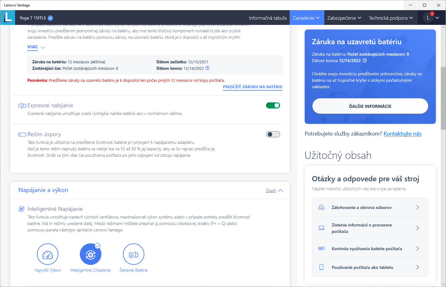 Nastaveniam cez tento softvér som sa venoval už v minulosti, nemá zmysel to rozoberať. Kto máte Lenovo notebooky, Vantage poznáte. Kto nie, odporúčam tento softvér používať. Je to silná stránka značky a pomôže vám nastaviť si ekvalizér hudby, je tu správa napájania, nastavenie klávesnice a ďalšie funkcie.